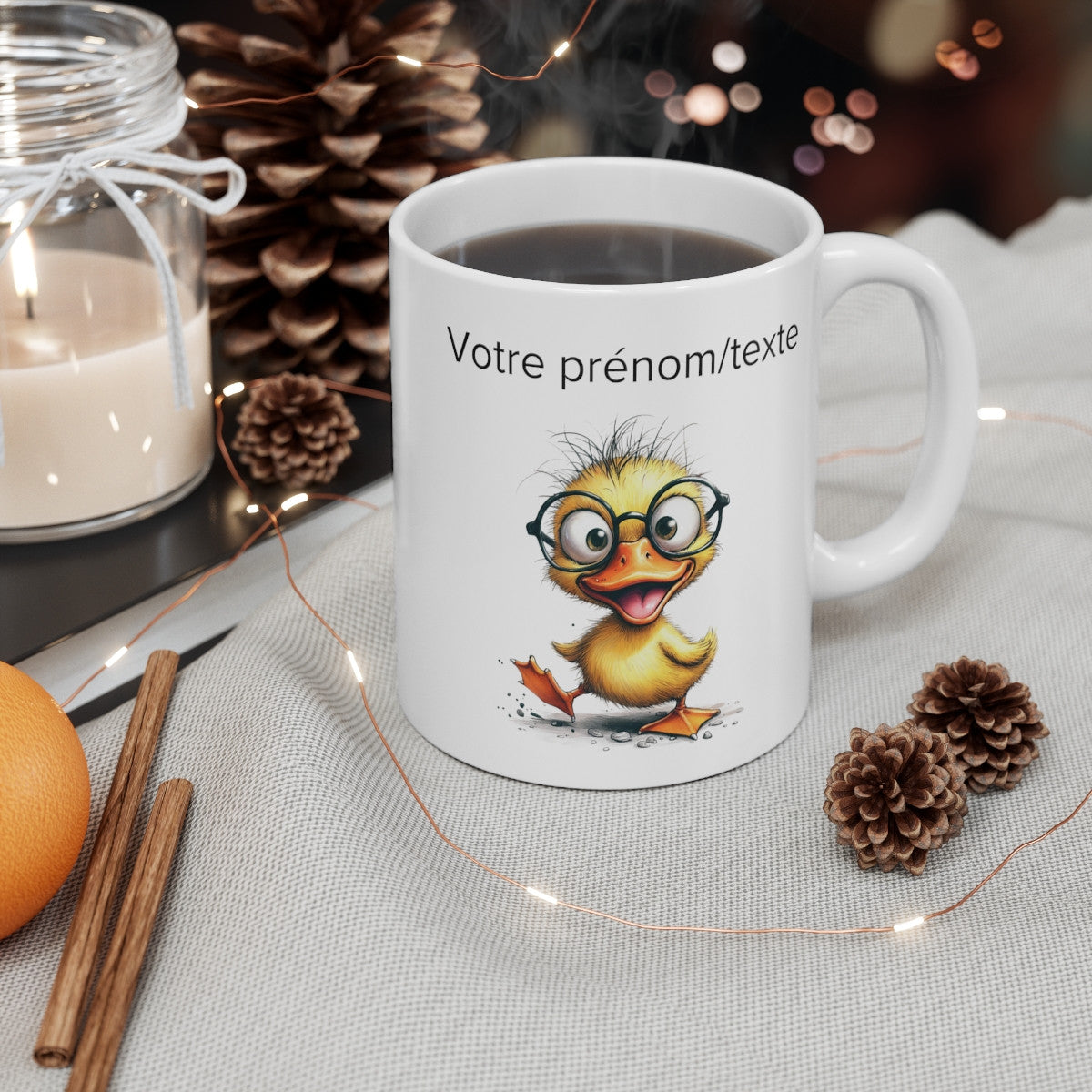 Mug personnalisable personnalisé Petit canard avec des lunettes avec son prénom ou texte pour enfant et adulte