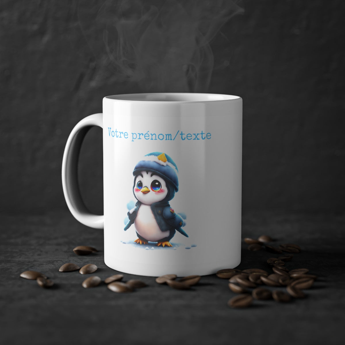 Mug personnalisable personnalisé Pingouin avec son prénom ou texte pour enfant et adulte