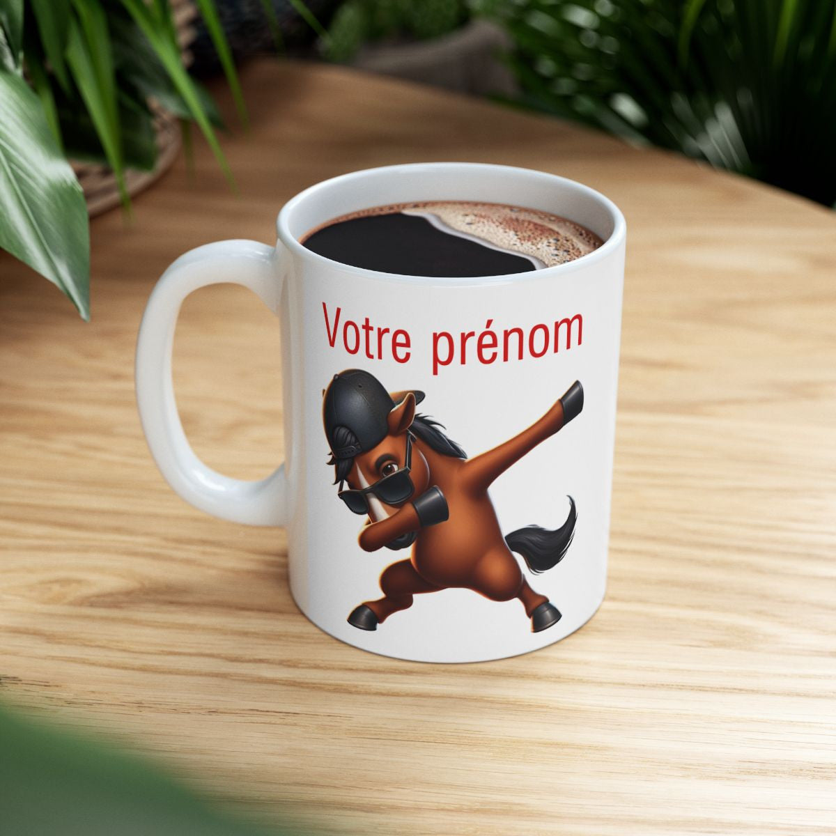 Mug Personnalisable personnalisé Prénom Texte animal animaux Cheval Qui Dab pour enfant et adulte