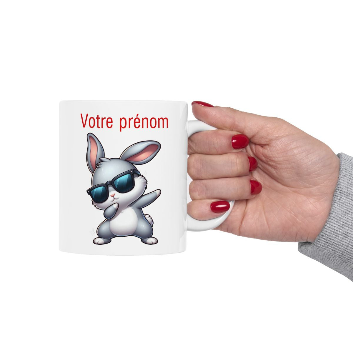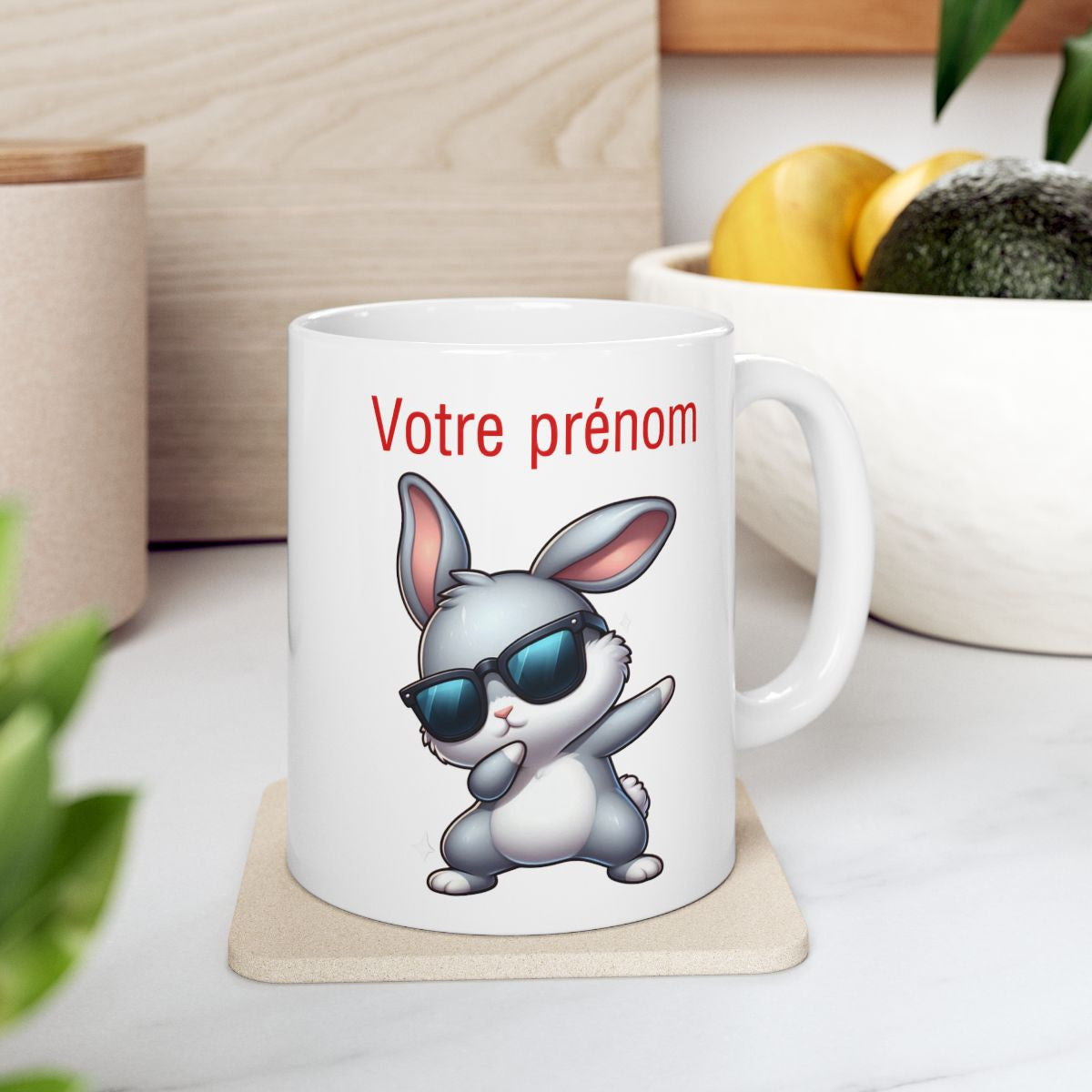 Mug Personnalisable Personnalisé Prénom Texte animal animaux  Lapin Qui Dab pour enfant et adulte