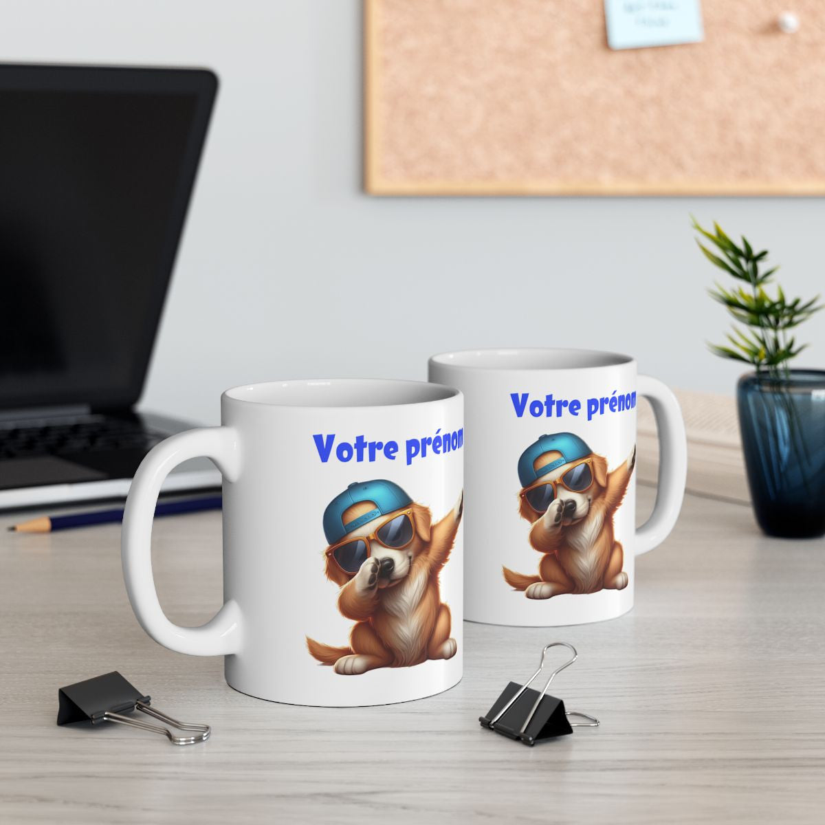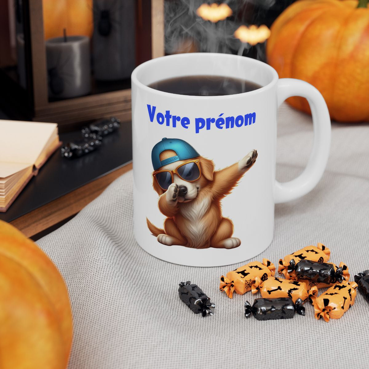 Mug Personnalisable Prénom Texte animaux animal Chien Qui Dab pour enfant et adulte