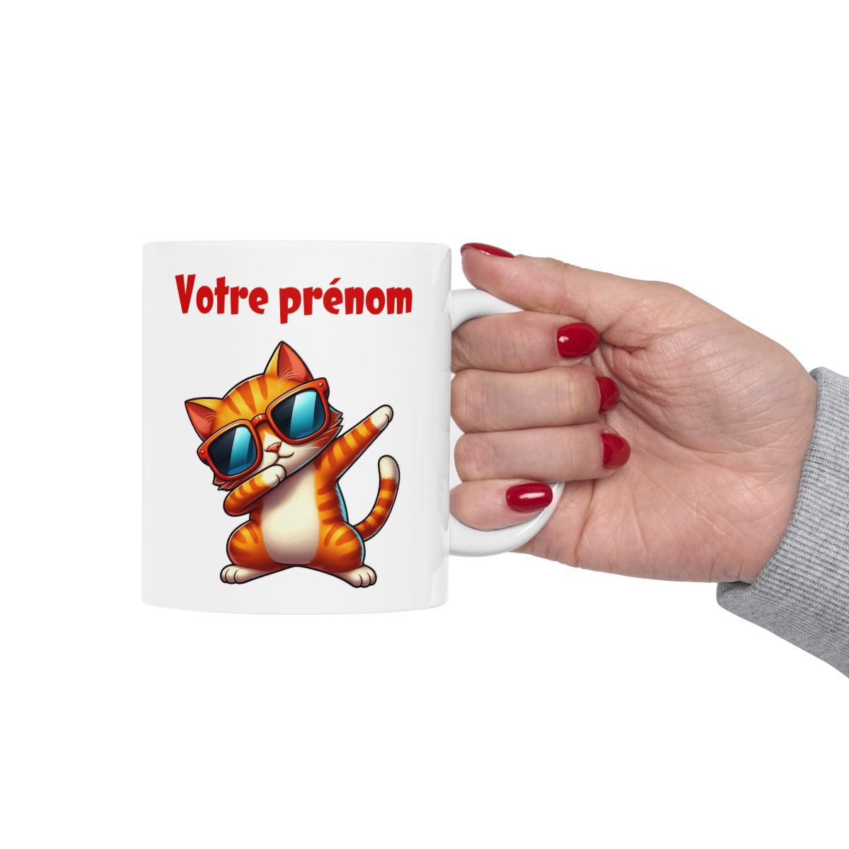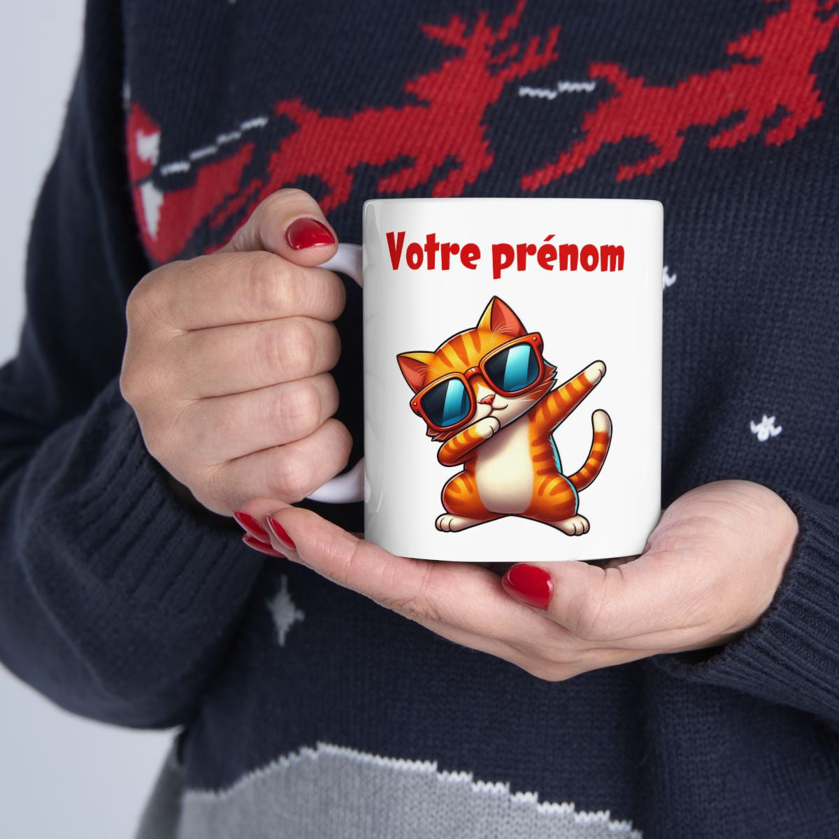 Mug Tasse Personnalisable Prénom Texte animal animaux Chat Qui Dab pour enfant et adulte