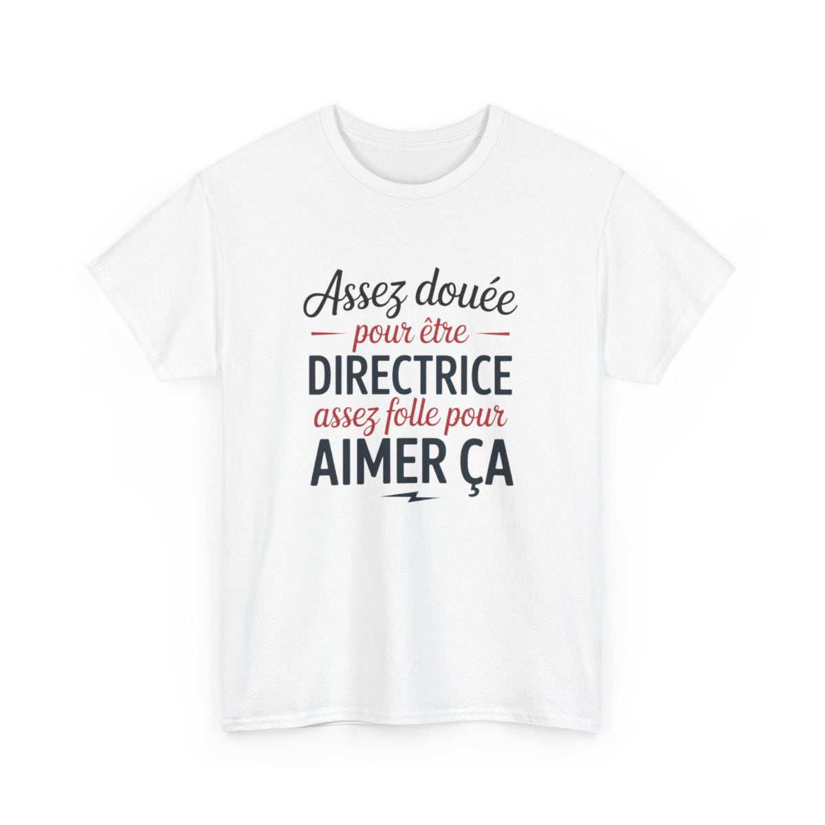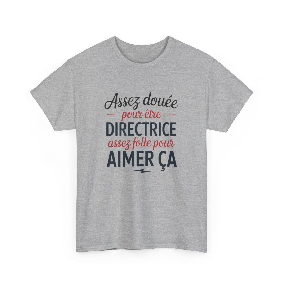 T-shirt Femme Citation Directrice Tee-shirt Blanc & Gris Humour Travail  Assez Douée pour Être Directrice  S-3XL