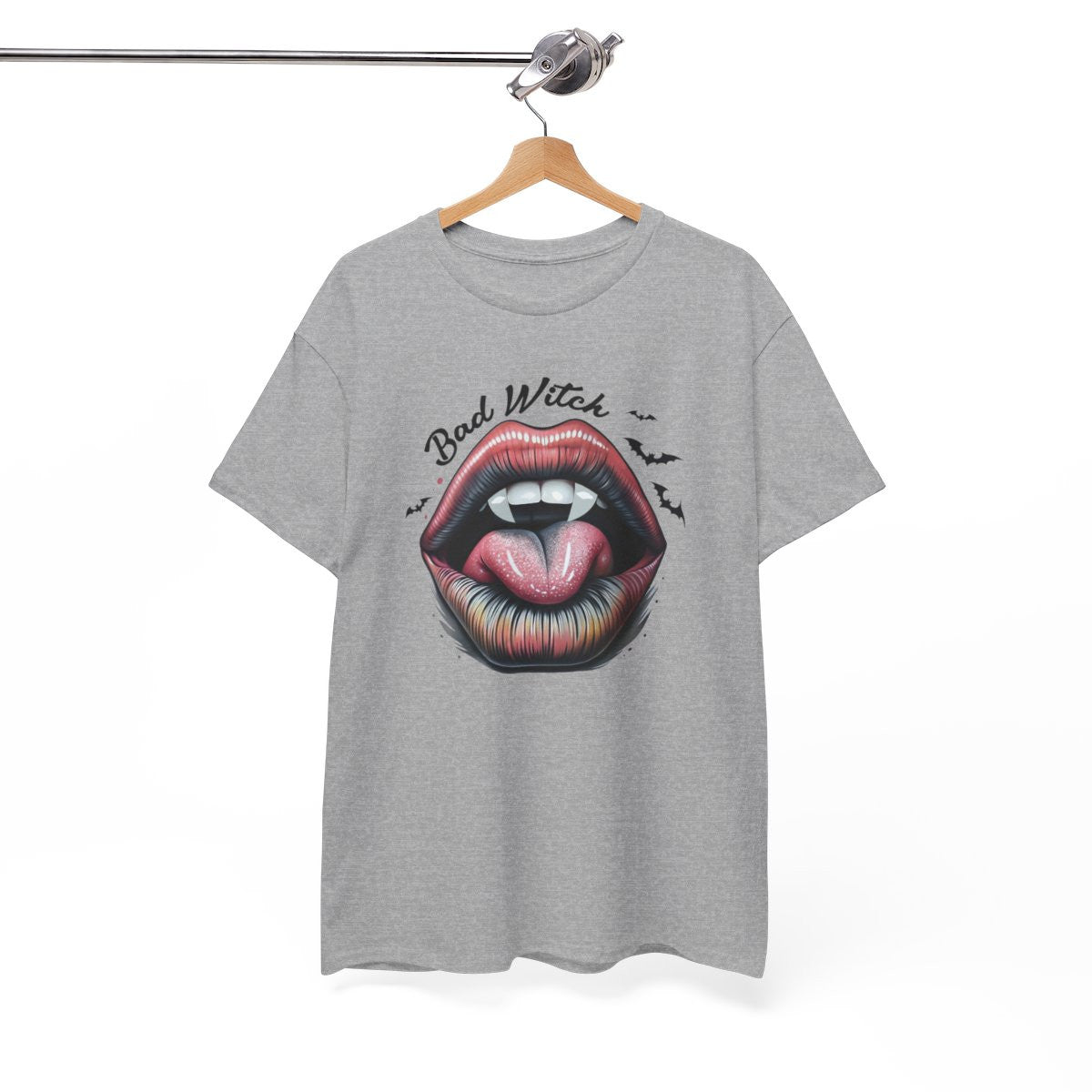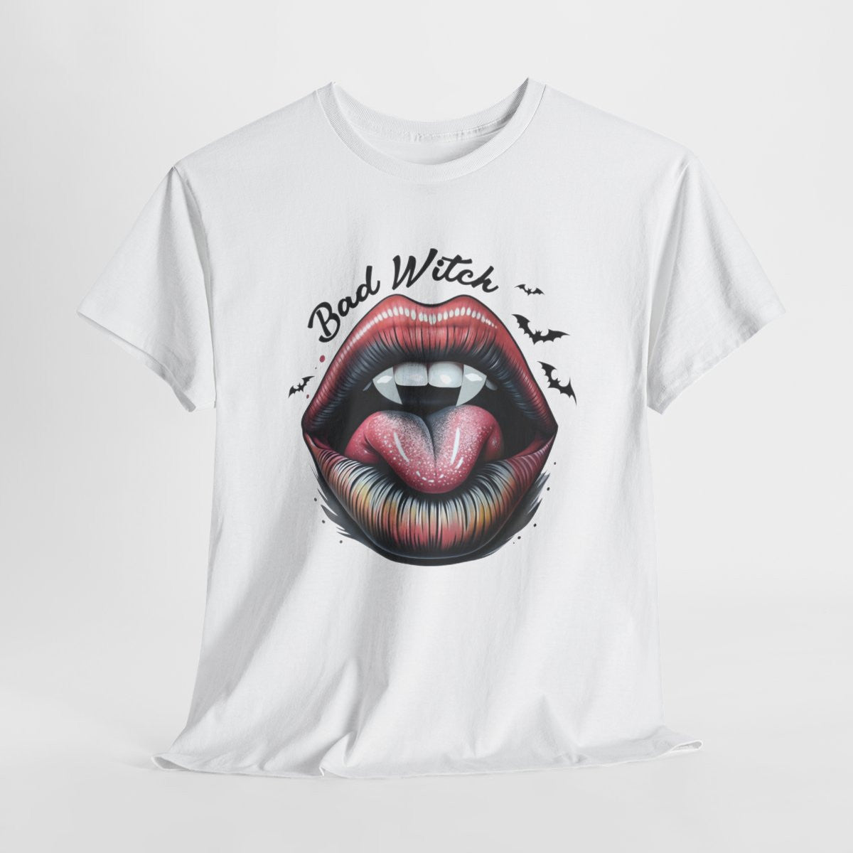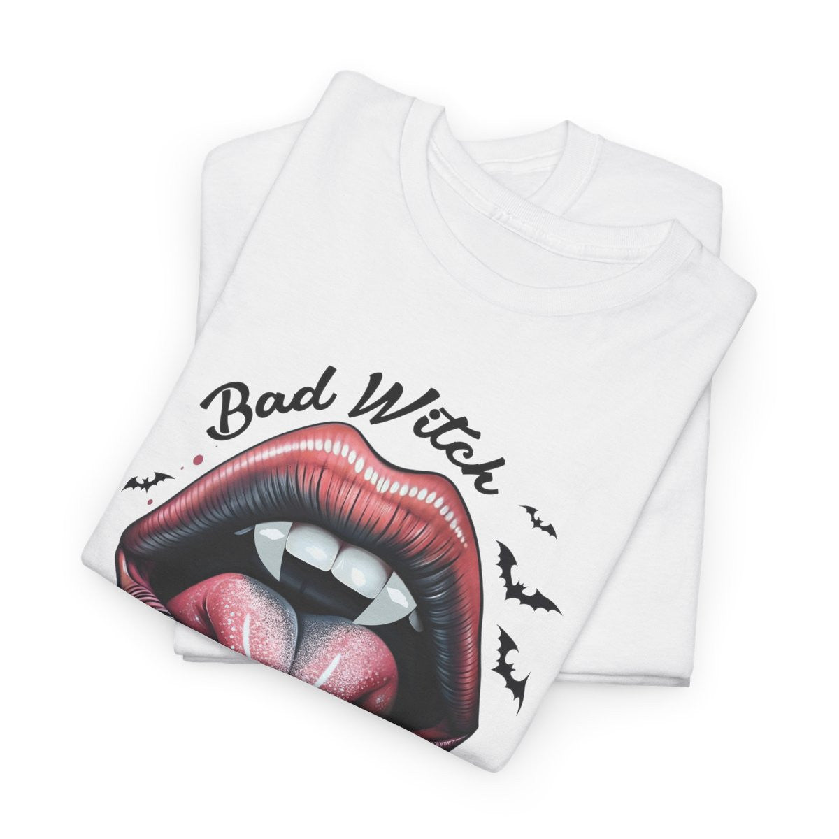 T-shirt Halloween "Bad Witch" avec Bouche et Chauves-souris – Pour Femme