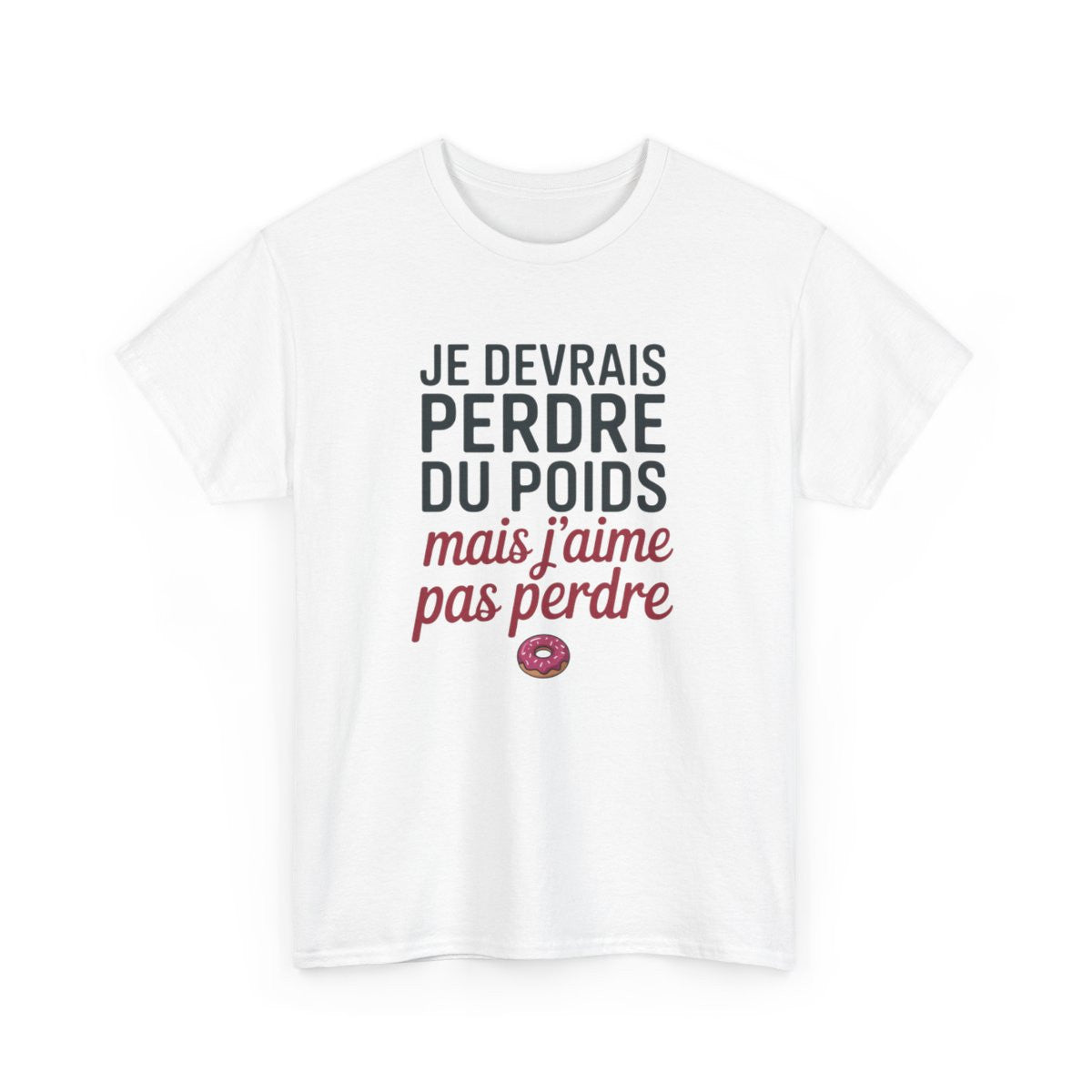 T-shirt Humour Perdre Du Poids Donut – Tee Shirt Drôle Homme Femme – J’aime Pas Perdre – Blanc ou Gris Sport Unisexe