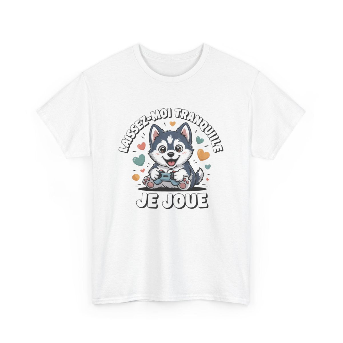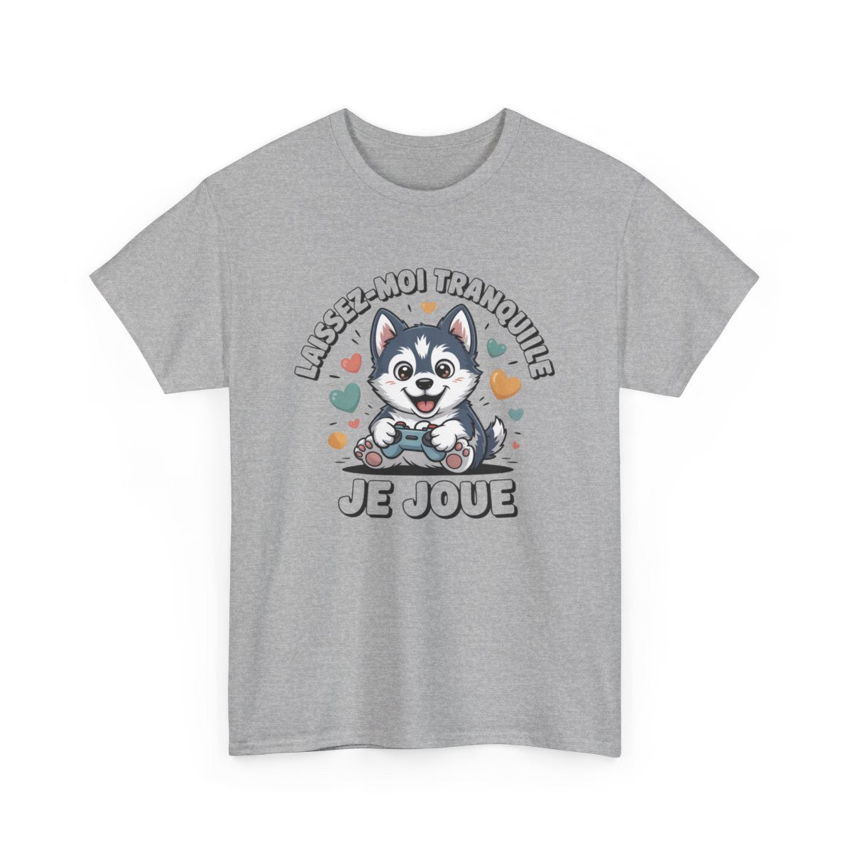 T-shirt Husky Gamer Unisexe Motif Manette & Texte  Laissez-moi Tranquille, Je Joue  Coton Blanc & Gris Sport S-3XL