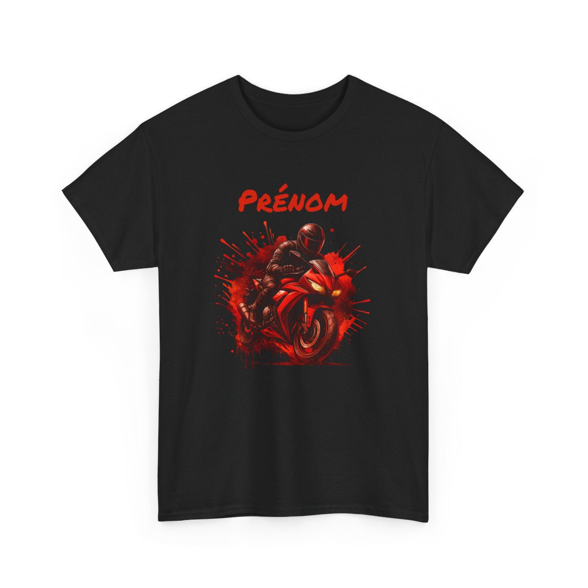 T-shirt Moto Homme Personnalisé – Tee-shirt Motard Rouge avec Prénom – Cadeau Biker Racing Feu Unique