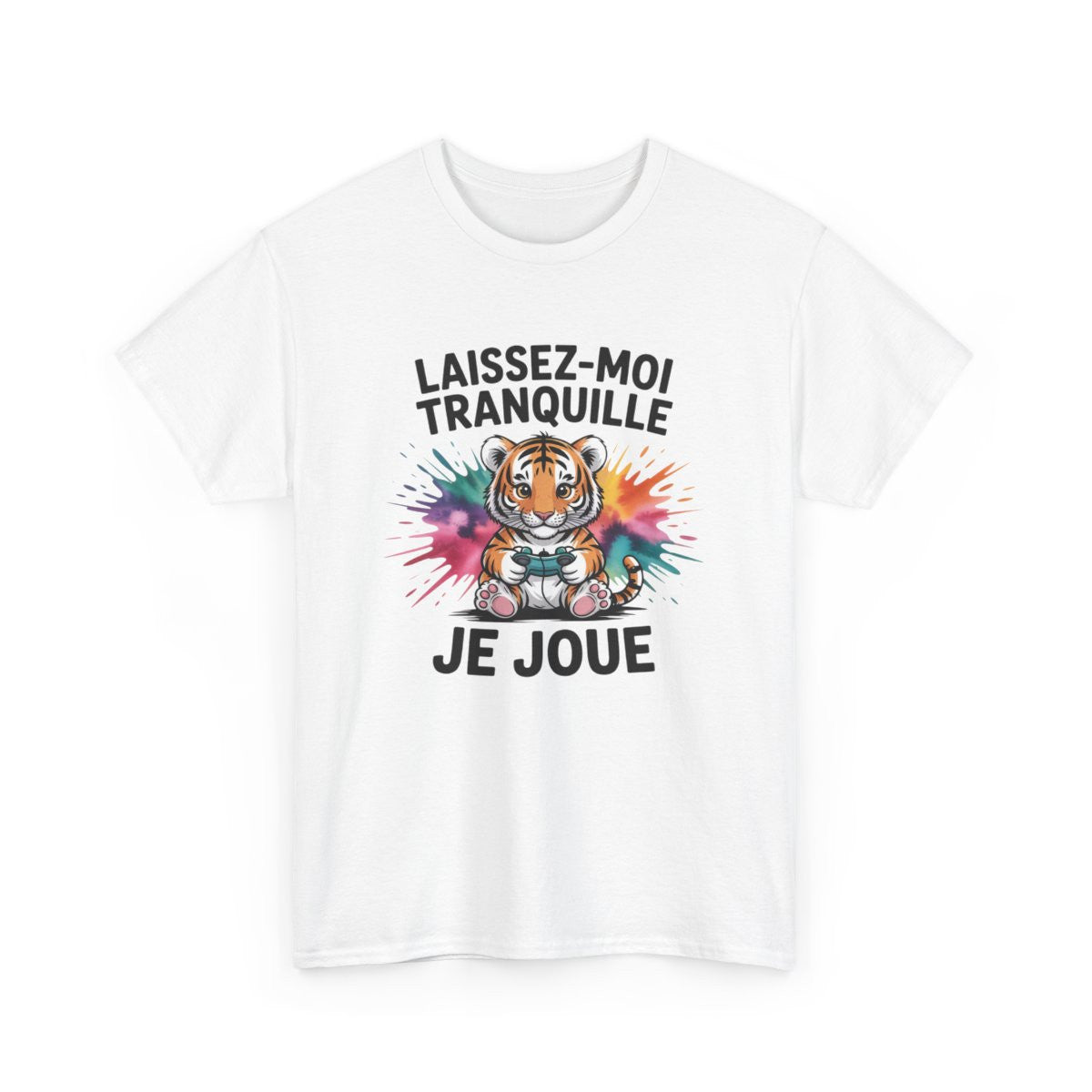 T-shirt Tigre Gamer Unisexe Tee-shirt Motif Coloré avec Manette  Laissez-moi Tranquille Je Joue  Blanc & Gris Coton S-3XL