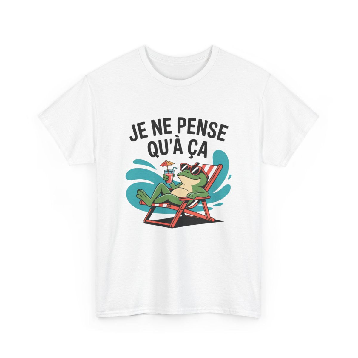 T-shirt Unisexe Humour Été Je Ne Pense Qu’à Ça  Grenouille Transat et Cocktail Tee-shirt Blanc & Gris Coton S-3XL