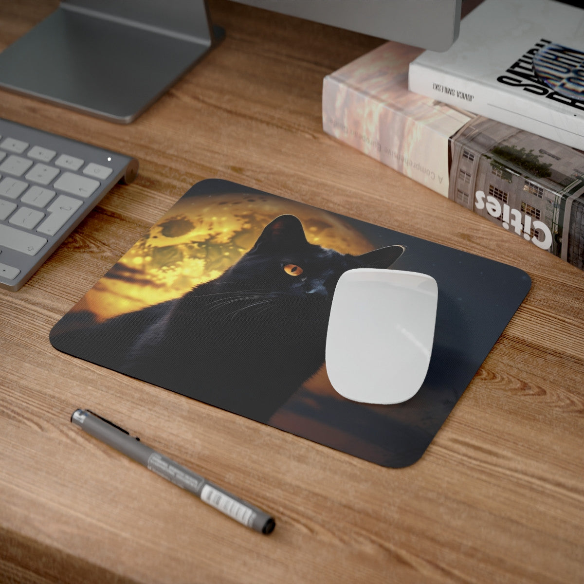 Tapis de souris 22x18 cm – Chat Noir & Lune Mystique – Thème Halloween