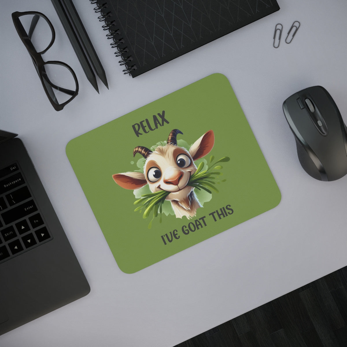 Tapis de souris 22x18 cm – Chèvre Mignonne & Jeu de Mots « Relax, I've Goat This » –