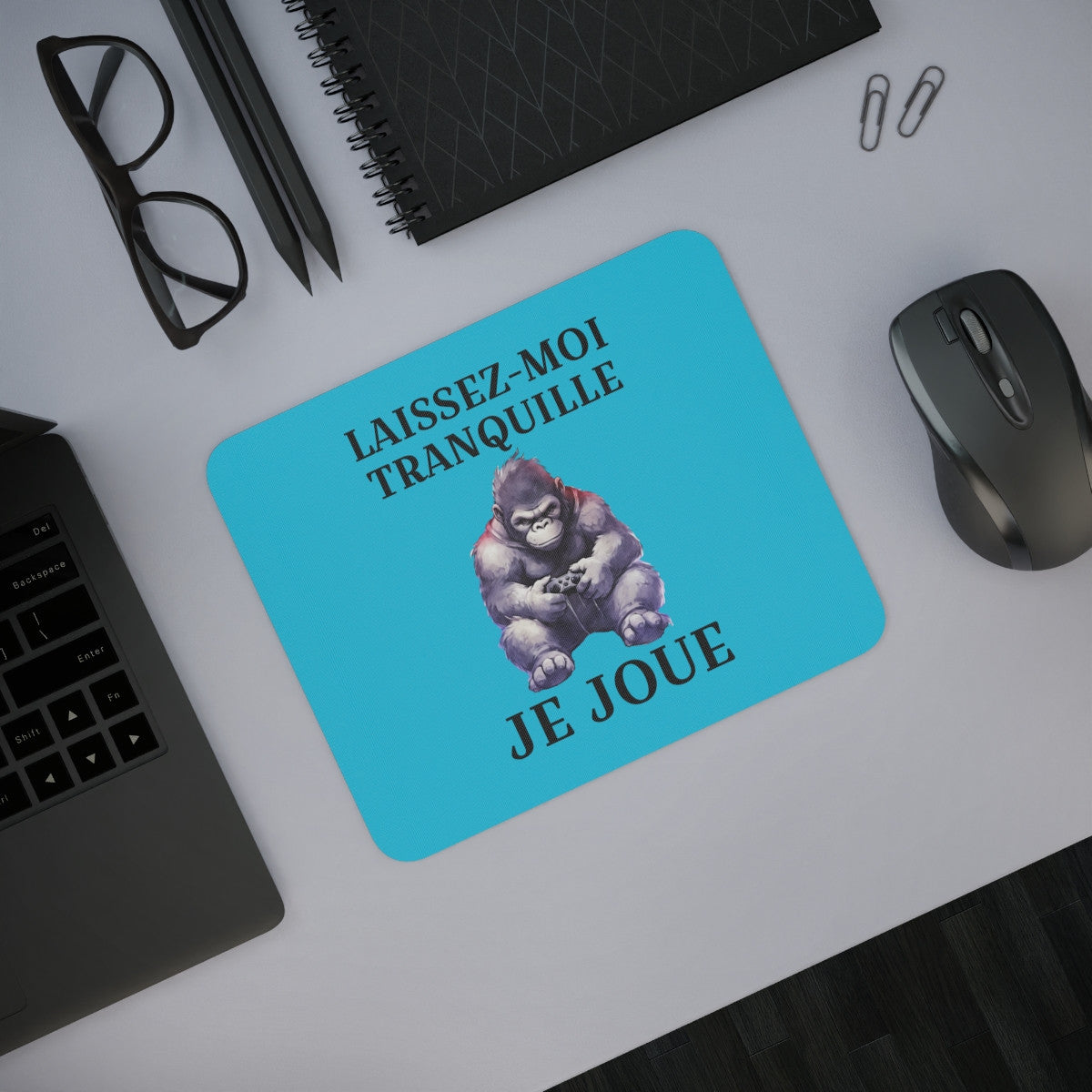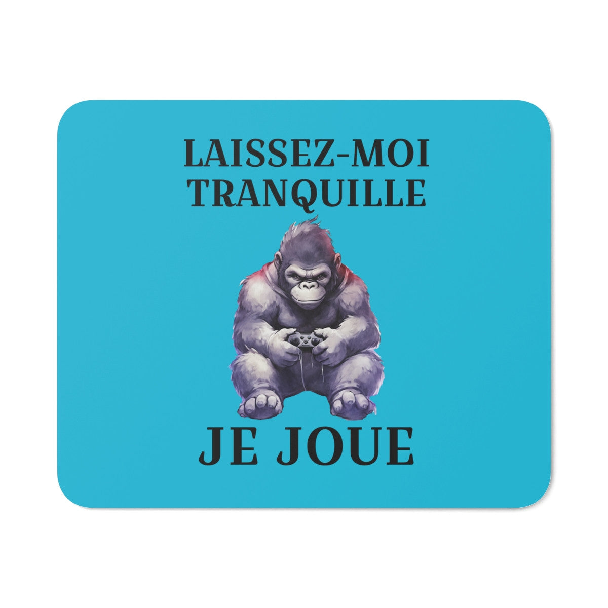 Tapis de souris 22x18 cm – Gorille Gamer « Laissez-Moi Tranquille Je Joue » – Fond Bleu