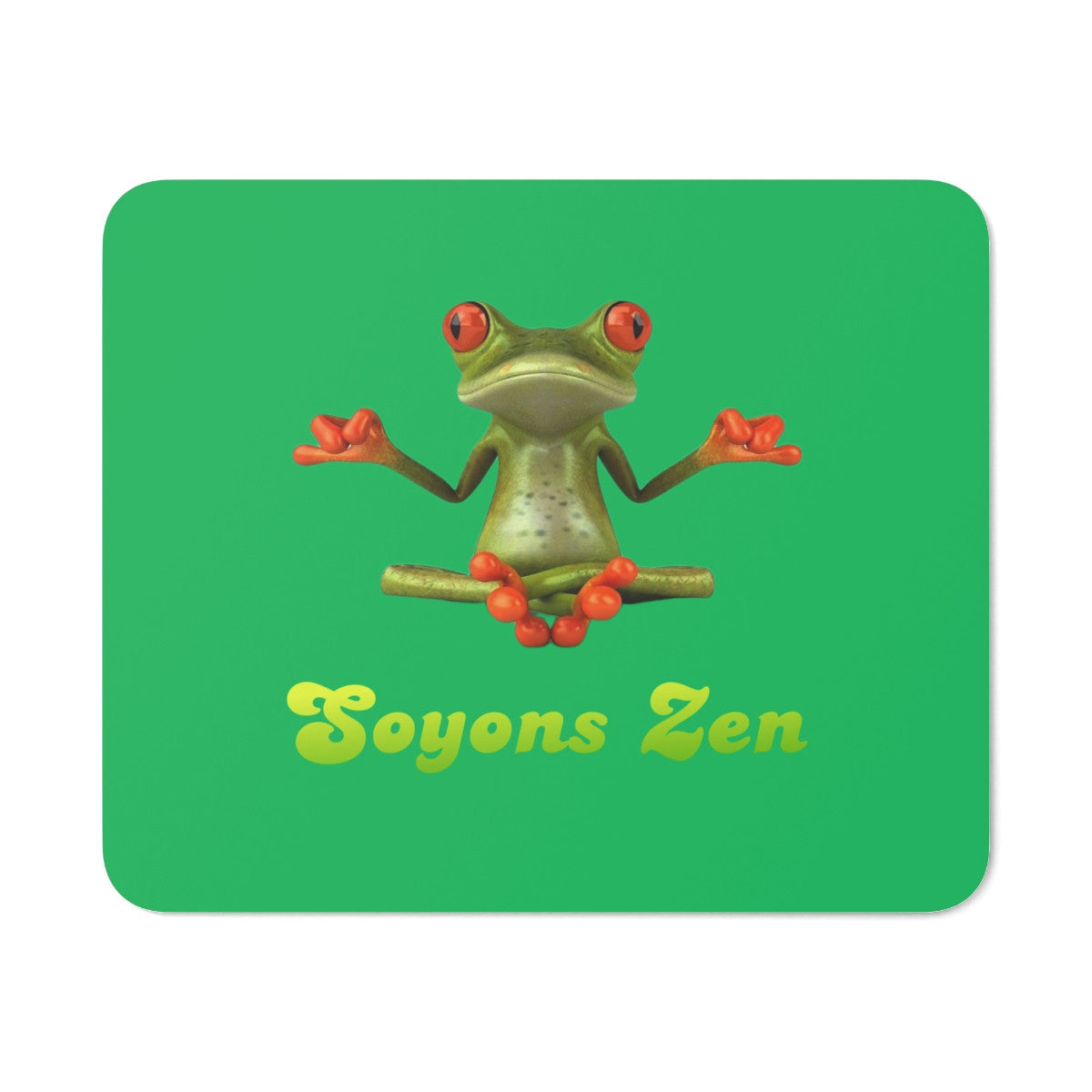 Tapis de souris 22x18 cm – Grenouille Zen sur Fond Vert – « Soyons Zen »