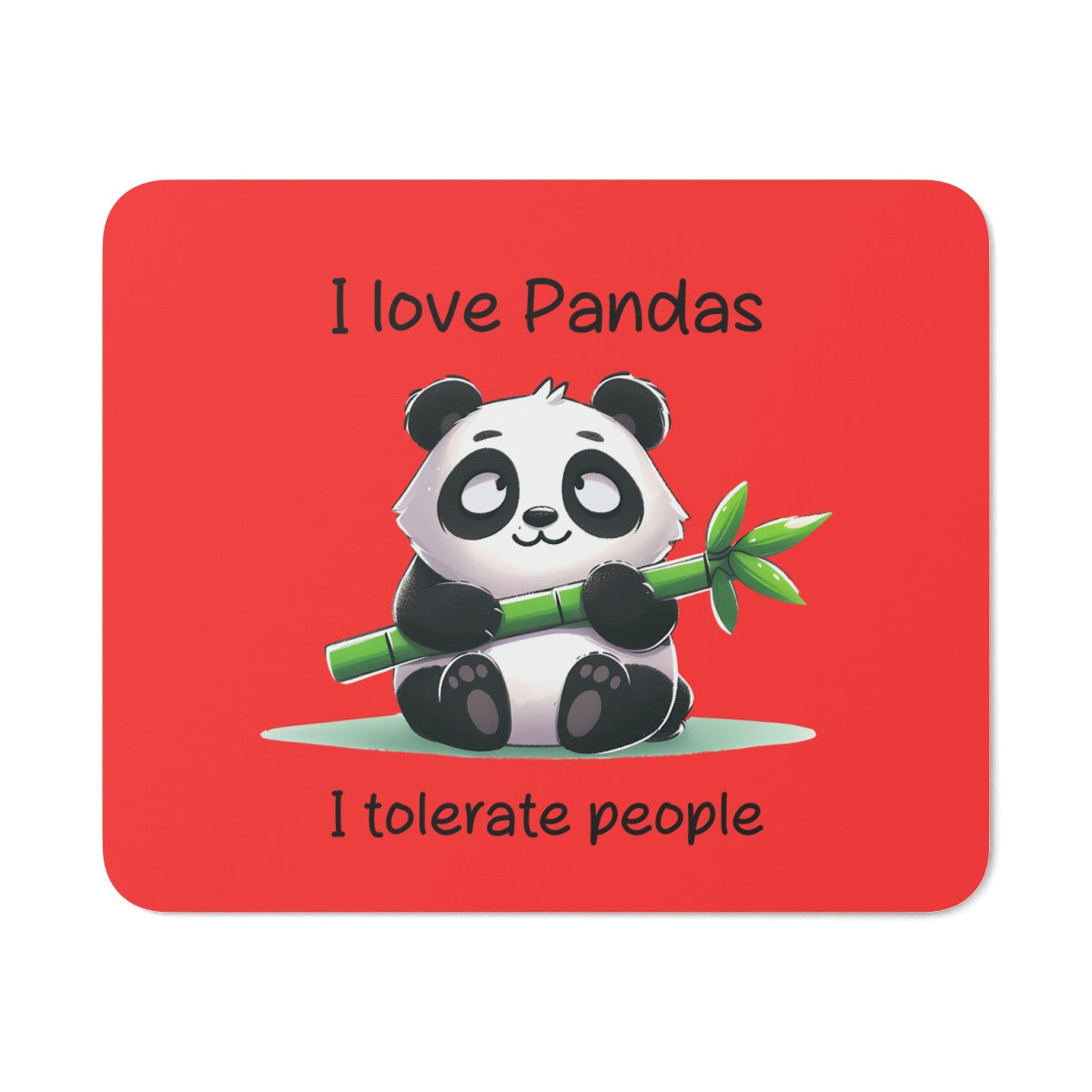 Tapis de souris 22x18 cm – Panda Mignon sur Fond Rouge – « I Love Pandas – I Tolerate People »
