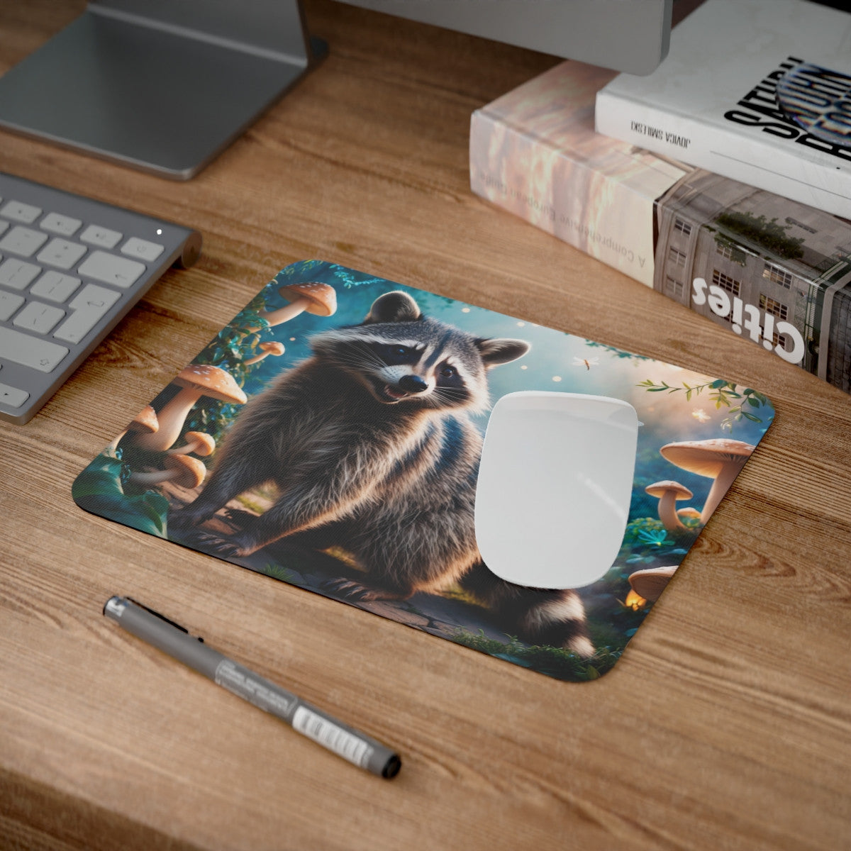 Tapis de souris 22x18 cm – Raton Laveur Forêt Enchantée – Illustration Fantastique RéalistE