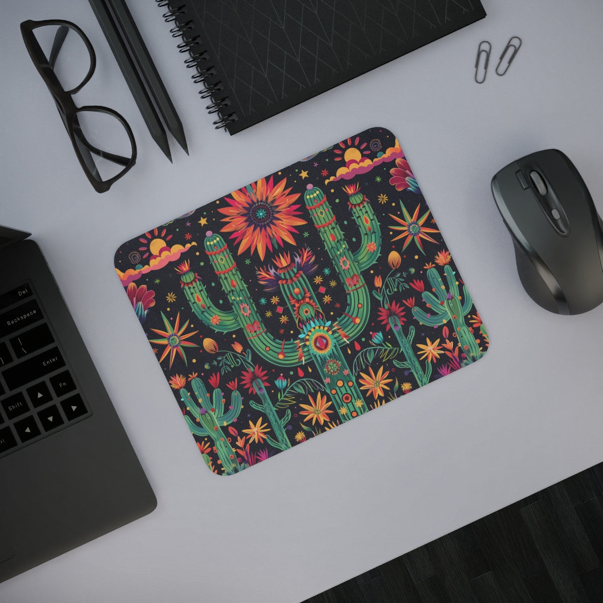 Tapis de Souris Cactus Psychédélique Design Coloré Floral Nocturne Style Bohème Idée cadeau