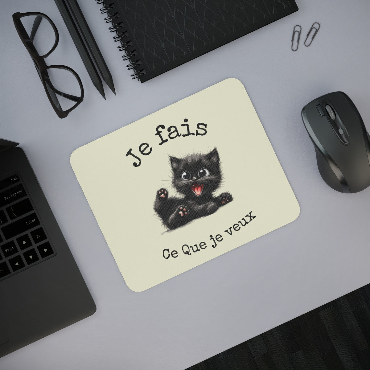 Tapis de souris chat noir  Je fais ce que je veux  22x18 cm  Touche d’humour et de caractère  Surface lisse, base antidérapante