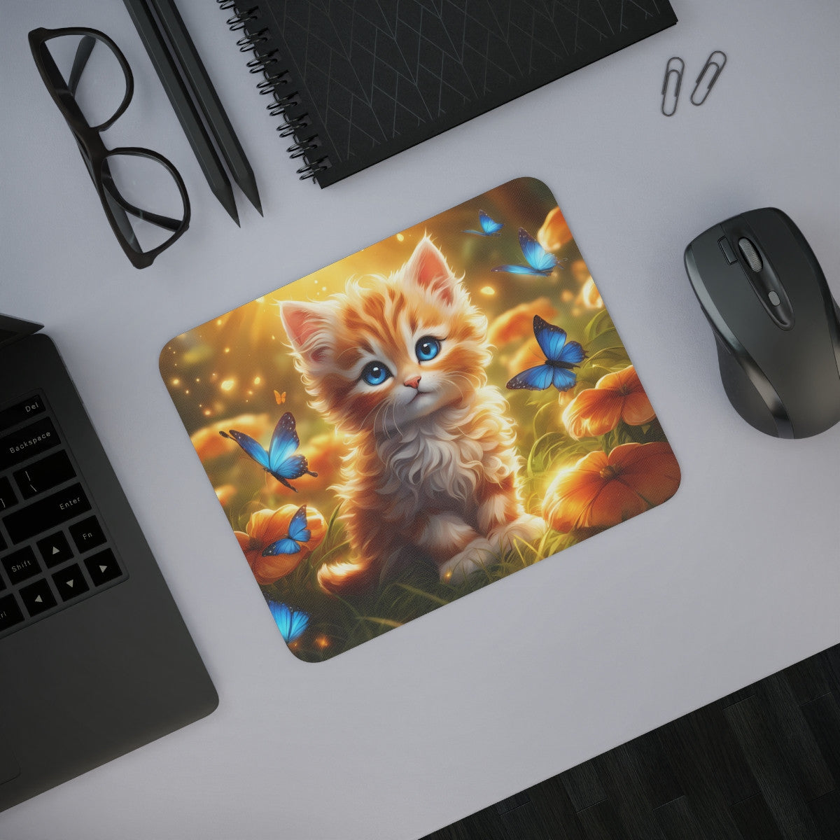 Tapis de souris Chaton & Papillons Design féérique 22x18 cm Tapis antidérapant pour bureau ou gaming Cadeau mignon