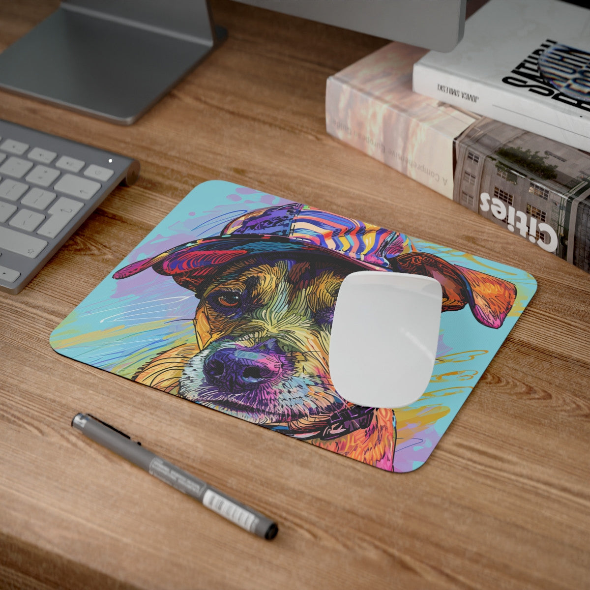 Tapis de Souris Chien Casquette Colorée  Illustration Street Art Texturée  Accessoire Bureau Original et Urbain