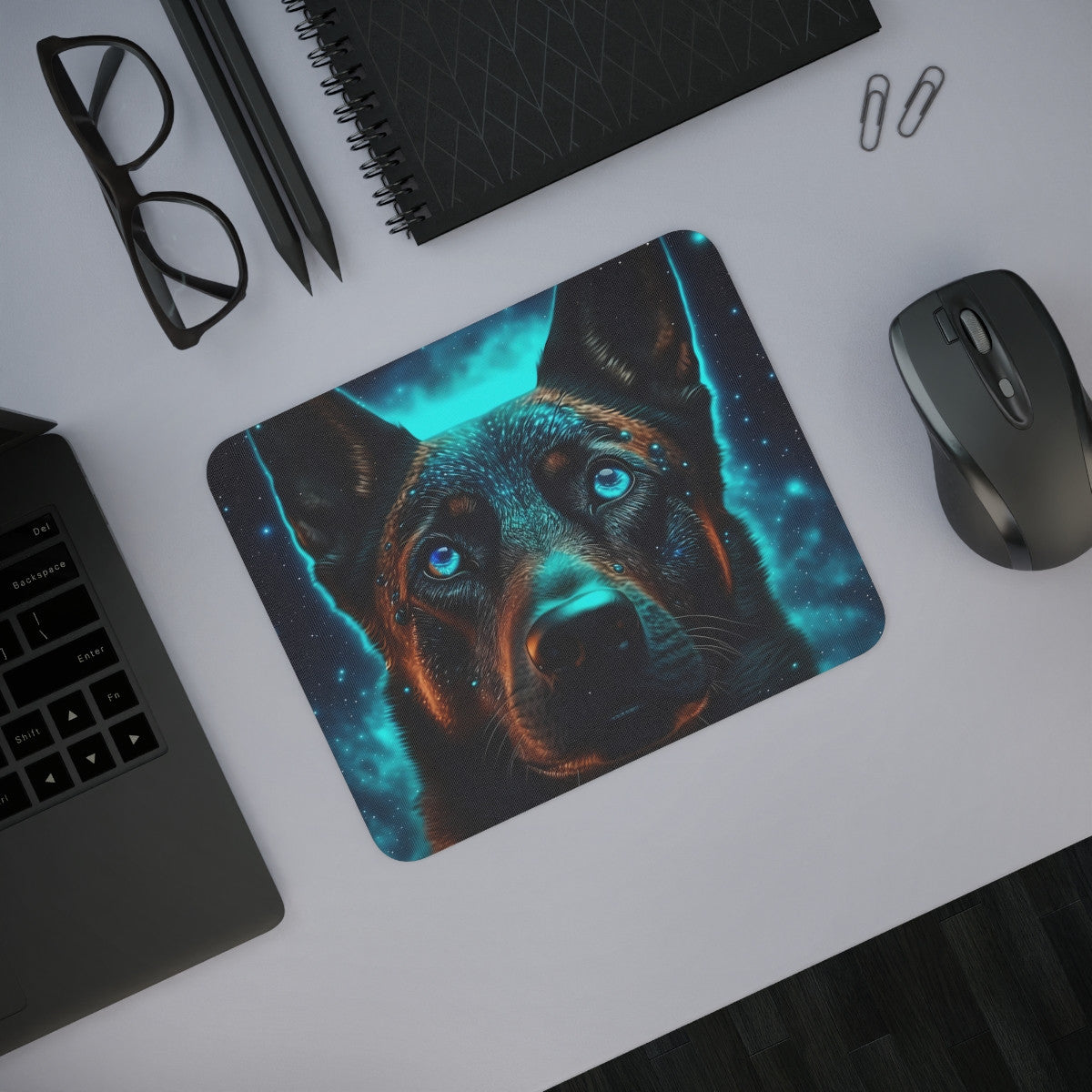Tapis de Souris Chien Galactique  Design Futuriste Néon Berger Cybernétique Idéal Gaming & Bureau Antidérapant
