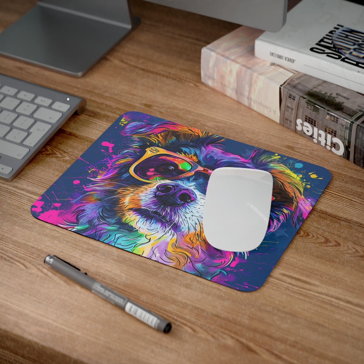 Tapis de Souris Chien Graffiti Lunettes Flashy et Éclaboussures Néon Illustration Street Accessoire Bureau Ultra Coloré