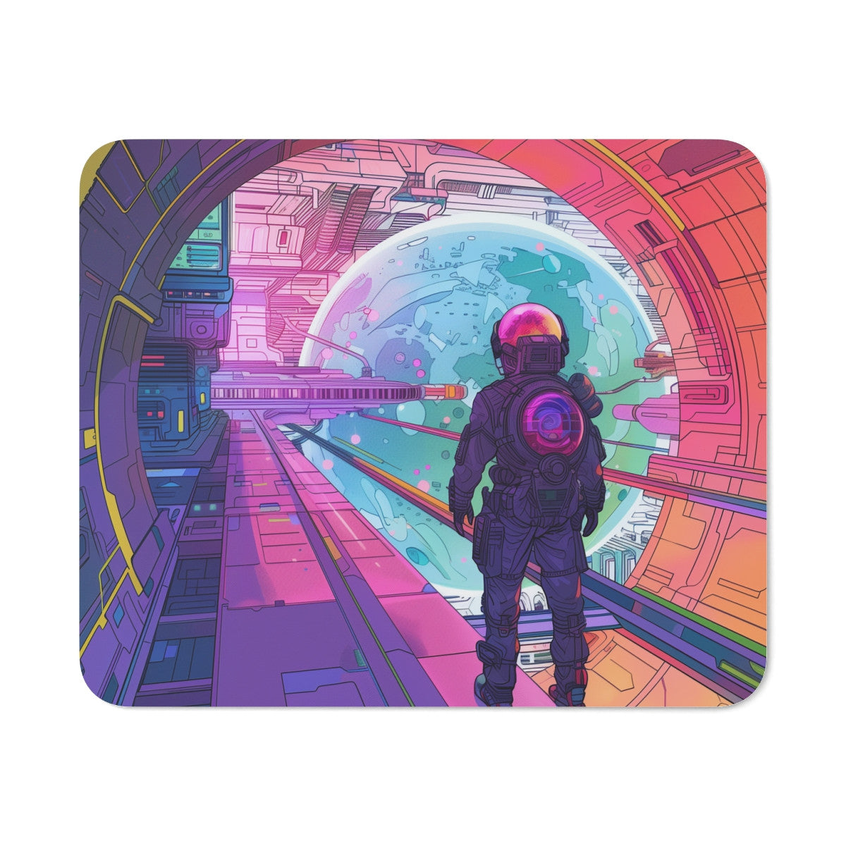 Tapis de Souris Futuriste Astronaute Face à la Planète Illustration Cyber Espace Rétro Idée cadeau