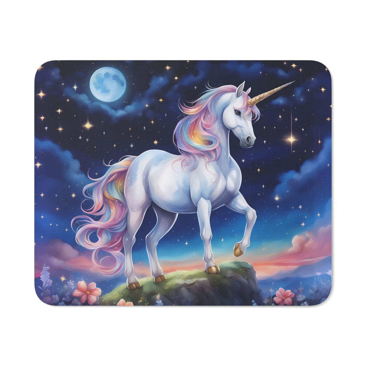Tapis de Souris Licorne Féérique   Nuit Étoilée Illustration Magique et Enchantée  Accessoire Bureau Fantastique et Poétique