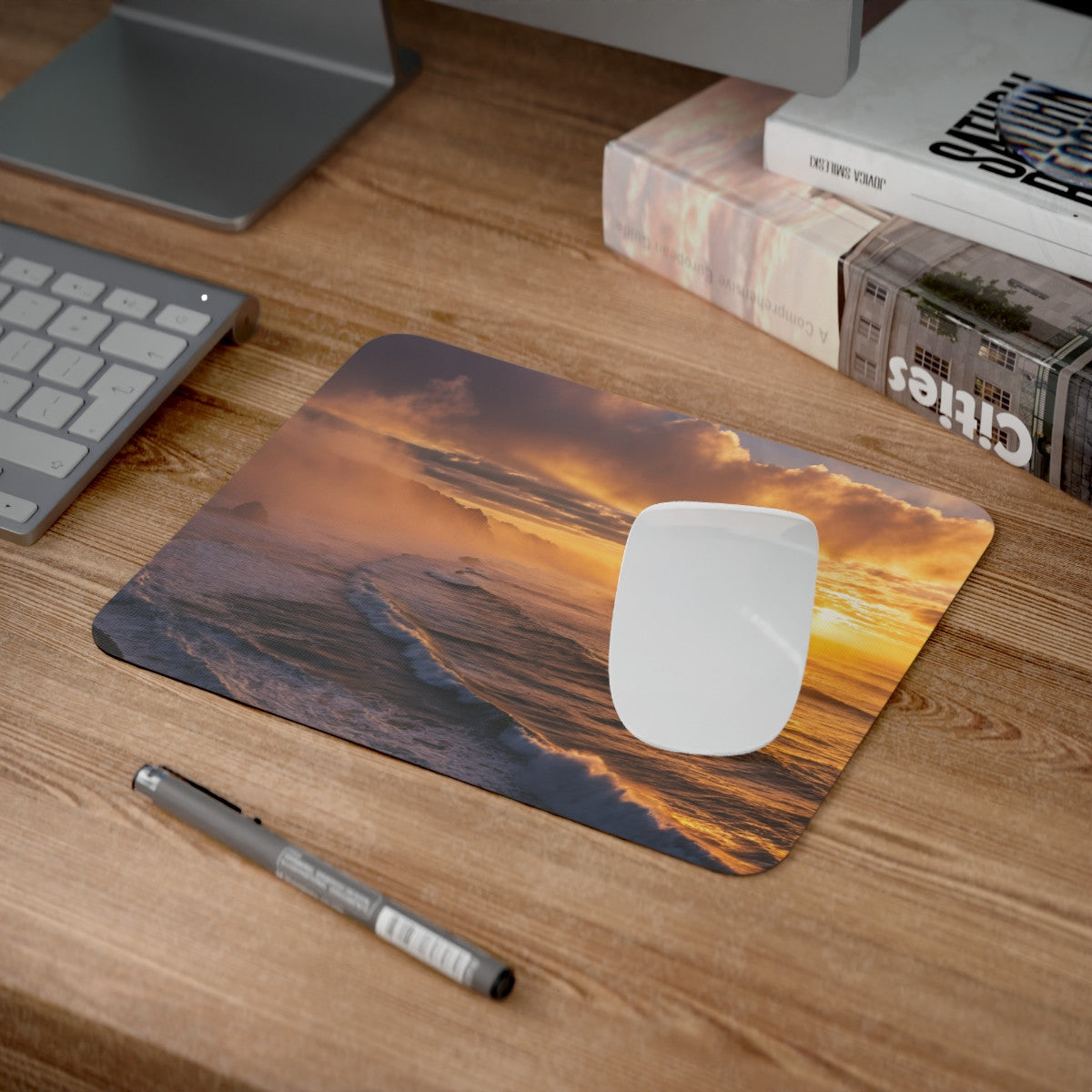 Tapis de Souris Paysage Océanique Coucher de Soleil Doré sur Vagues et Brume Marine