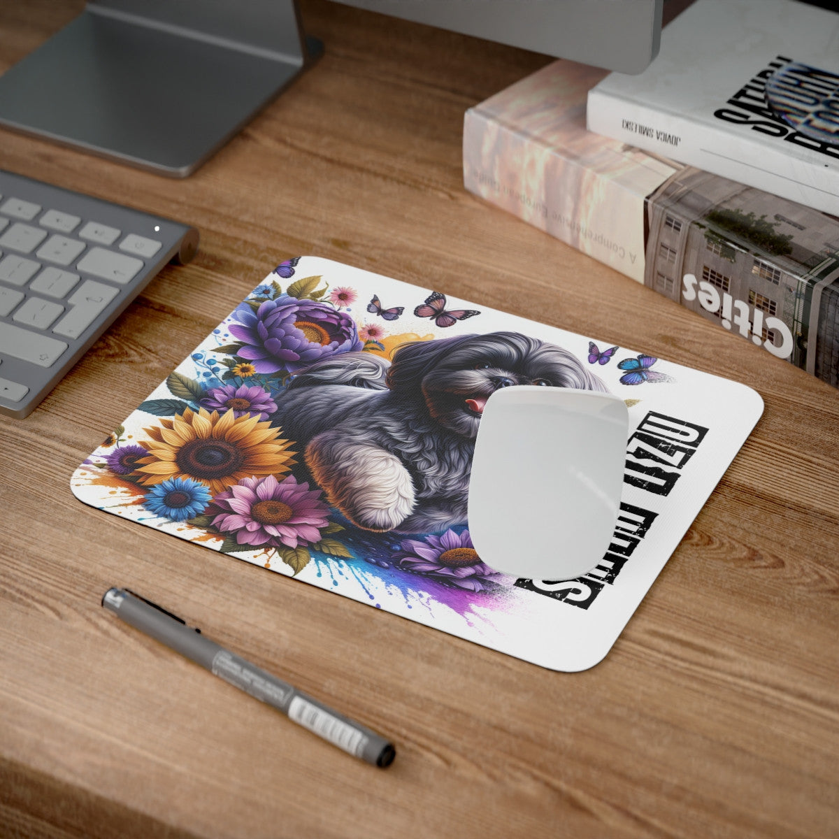 Tapis de Souris Shih Tzu Fleurs et Papillons  Illustration Colorée Style Artistique Idée cadeau