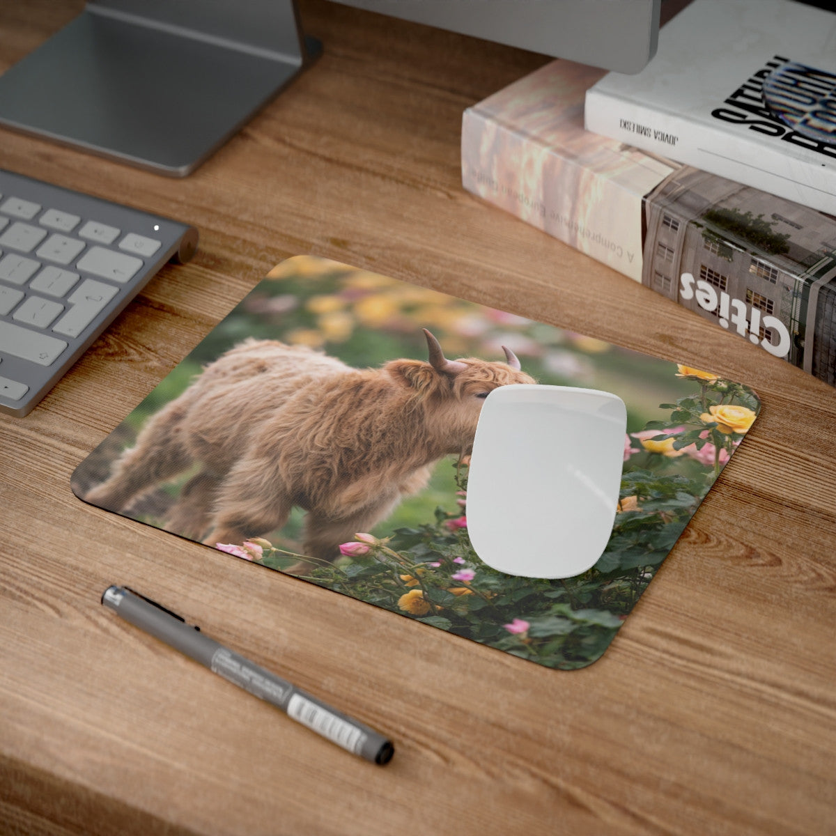 Tapis de souris veau Highland Scène champêtre fleurie Tapis doux 22x18 cm Ambiance nature et tendresse à votre bureau