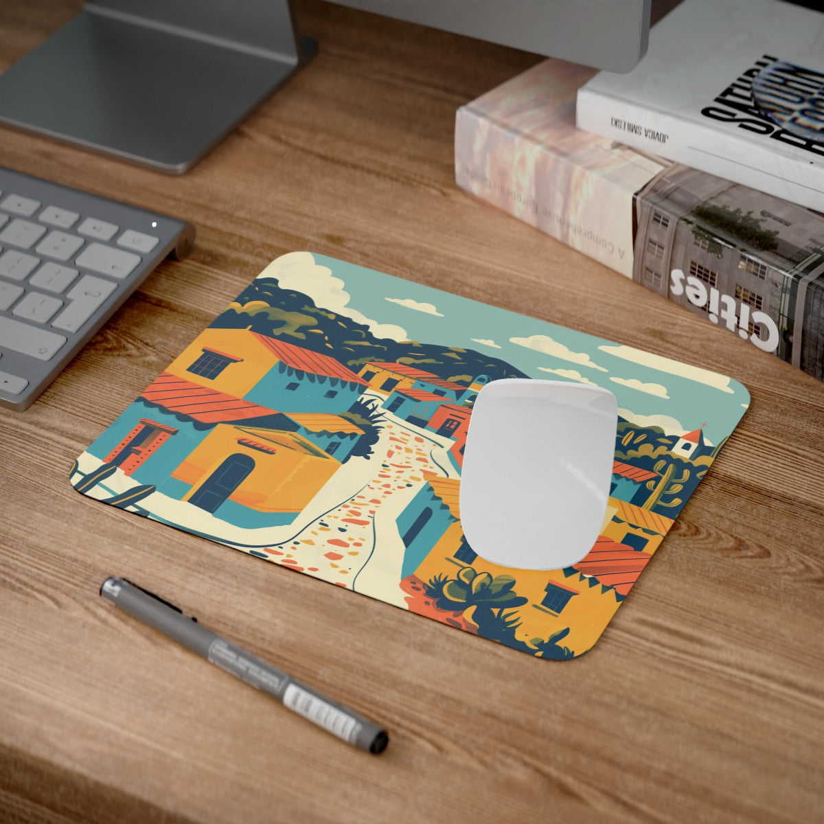 Tapis de Souris Village Mexicain  Scène Colorée de Rue ensoleillée avec Maisons Traditionnelles