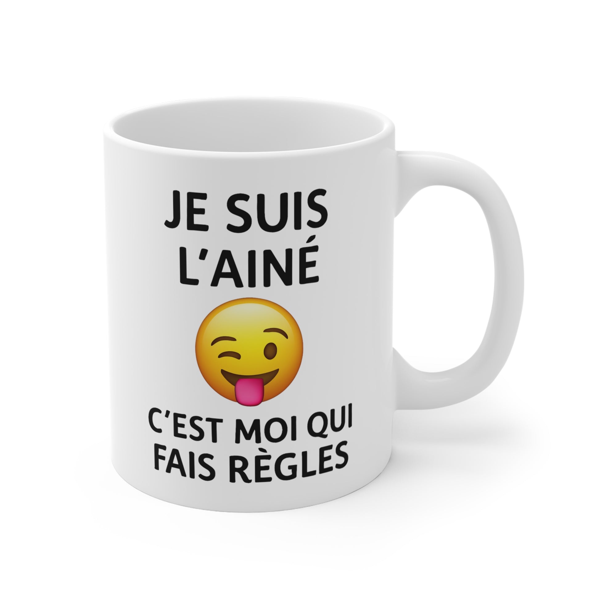 Tasse Céramique 325ml “Je Suis l’Aîné” – Mug Humour Famille Frères Sœurs – Cadeau Drôle
