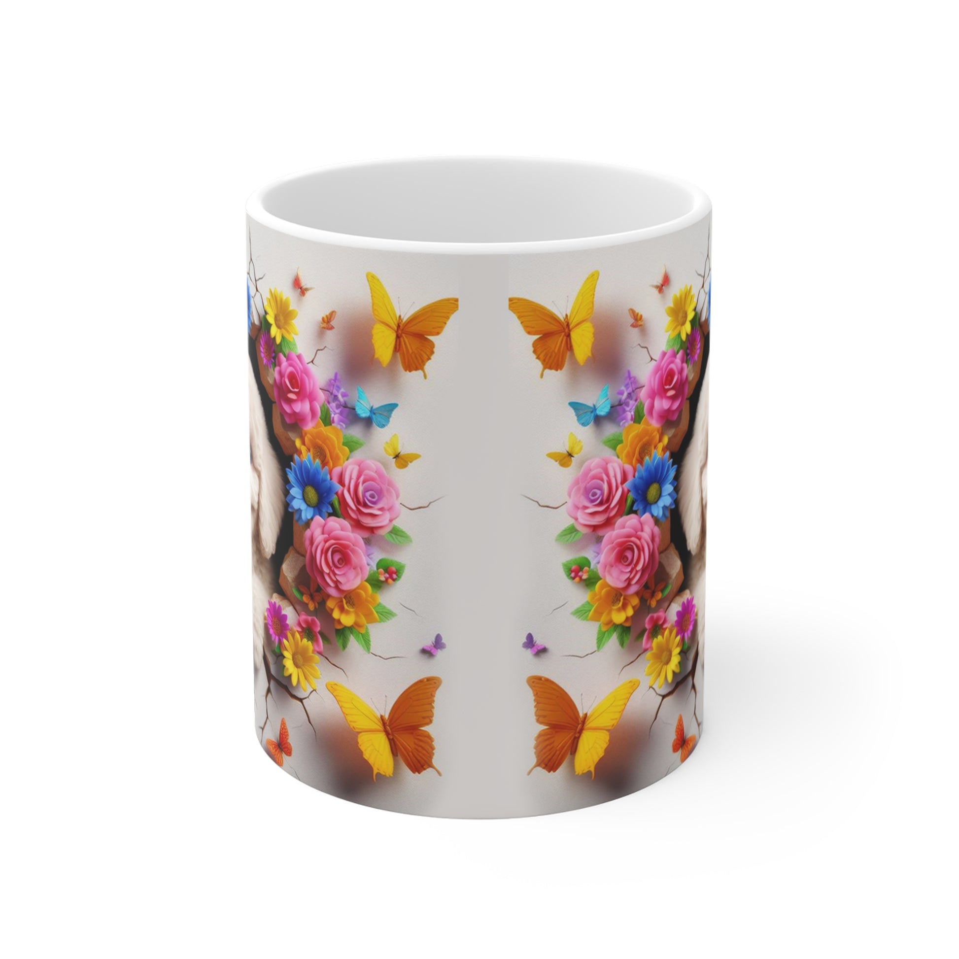 Tasse Céramique Bichon Frisé et Fleurs – Mug Chien Mignon Papillons – Cadeau Animaux Bohème 325ml