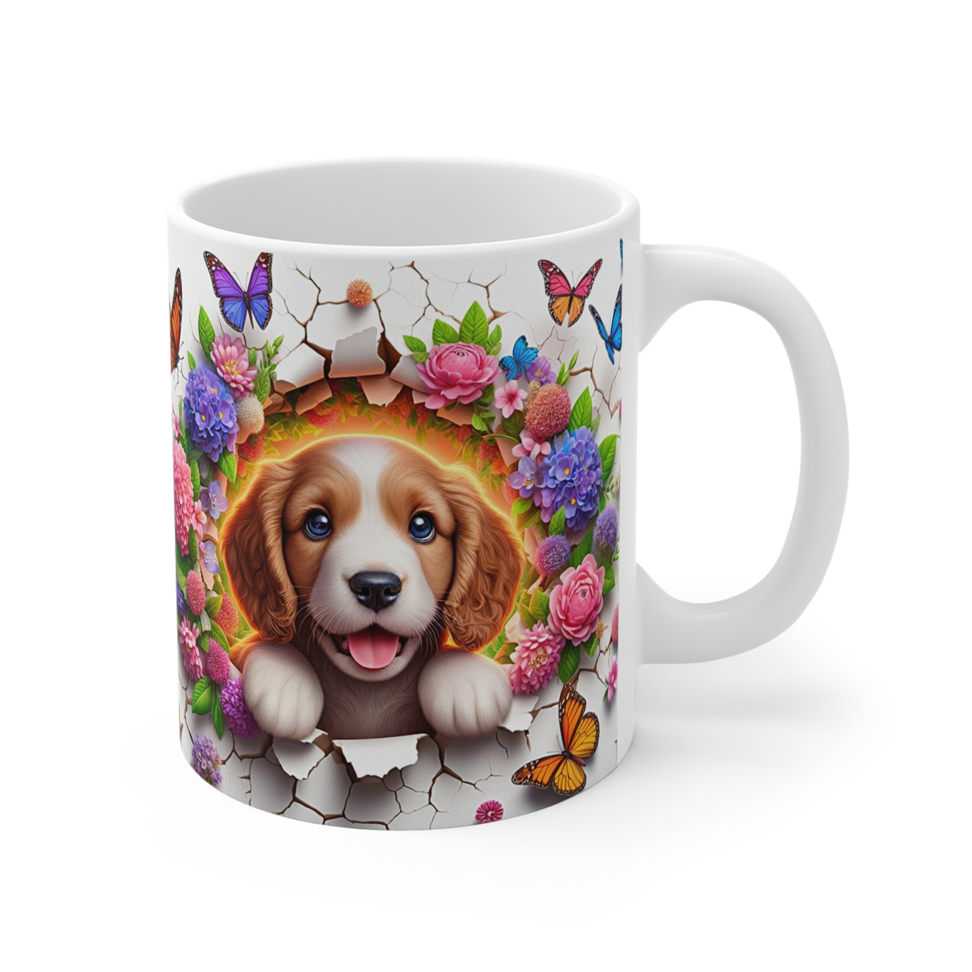 Tasse Céramique Cavalier King Charles et Fleurs – Mug Chien Mignon Papillons – Cadeau Animaux Bohème 325ml