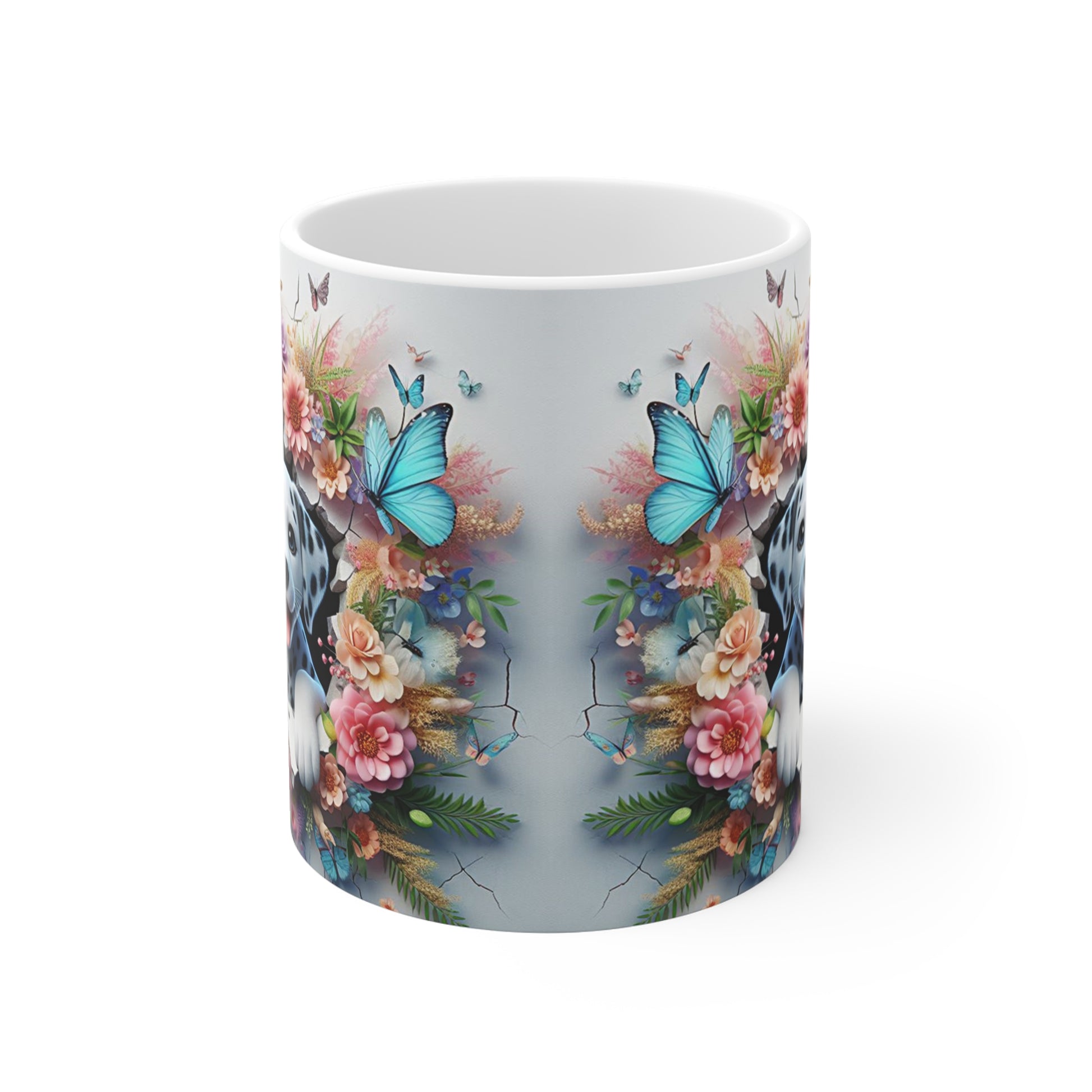 Tasse Céramique Dalmatien et Fleurs – Mug Chien Mignon Papillons – Cadeau Animaux Bohème 325ml