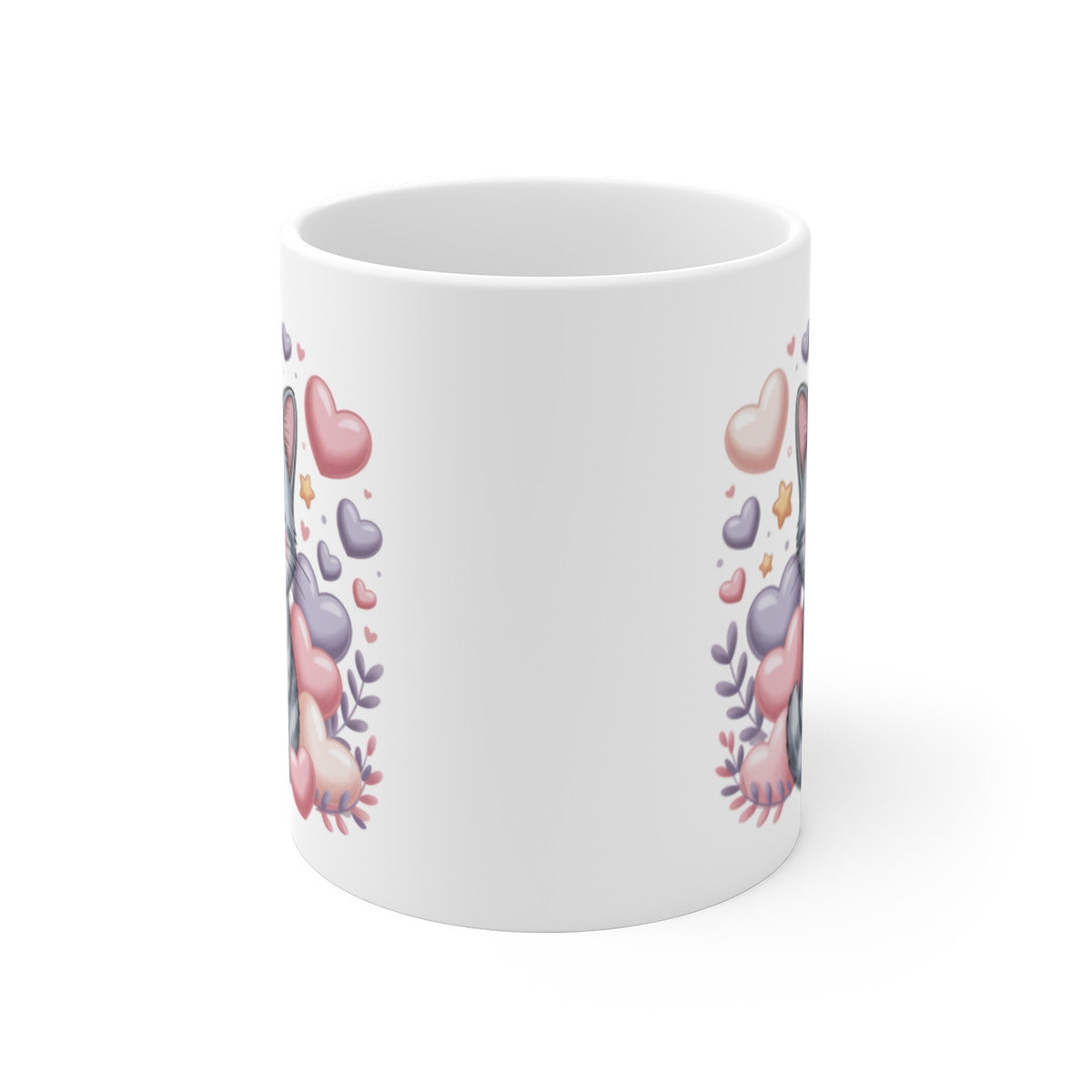Tasse Chat Gris  Mug Chaton Mignon avec Cœurs Pastel Cadeau Idéal Enfant, Ado & Fan de Chats