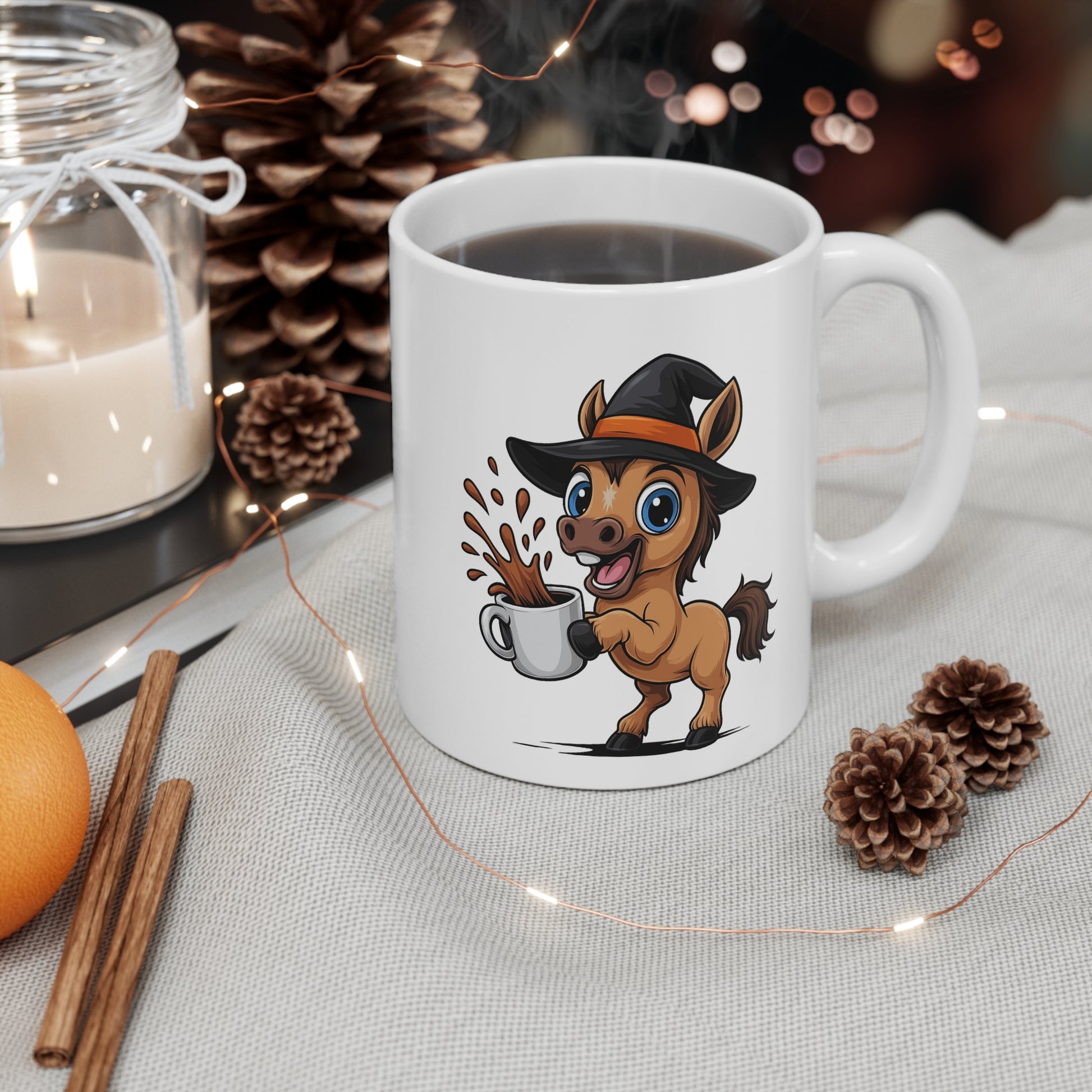 Tasse Cheval Sorcière Halloween – Mug Céramique Café 325ml – Cadeau Fantaisie Original