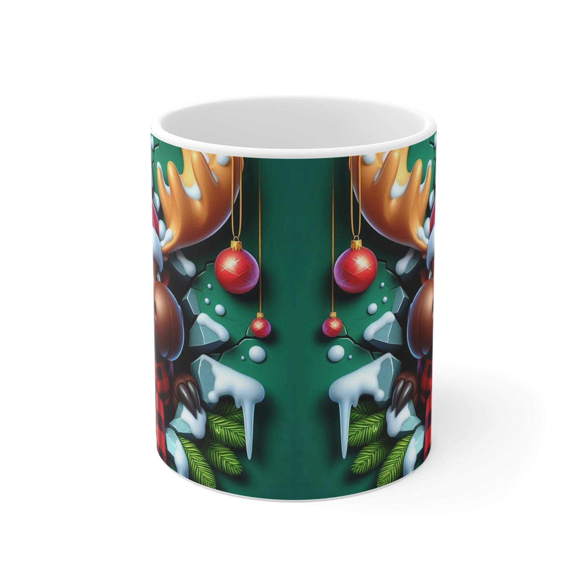 Tasse Élan de Noël – Mug Hiver Festif Sucre d’Orge & Bonnet Rouge – Cadeau Original 325ml