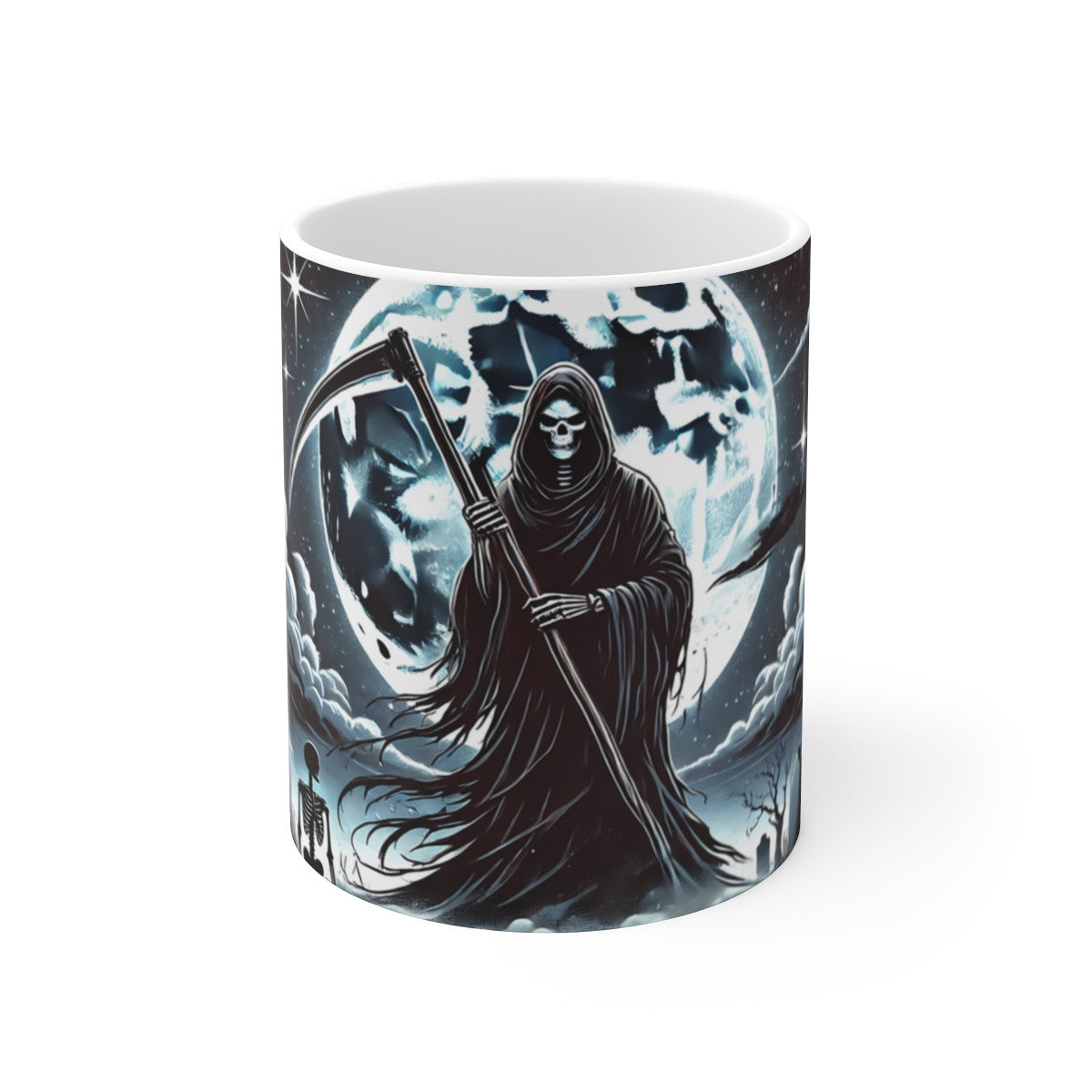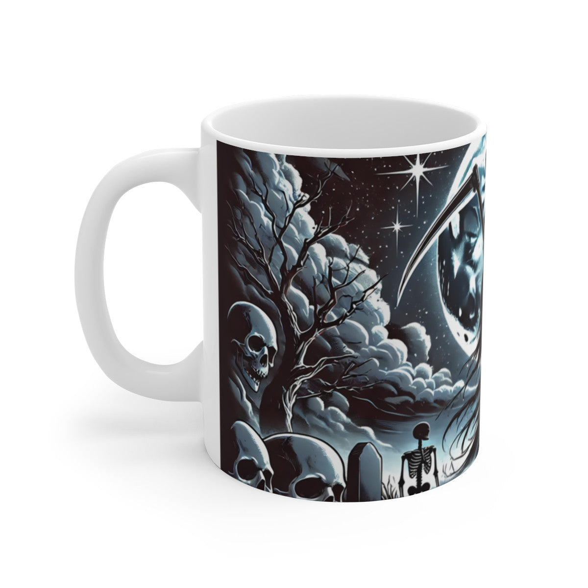 Tasse Faucheuse Gothique  Mug Crâne & Squelette sous Pleine Lune  Art Macabre Noir & Blanc