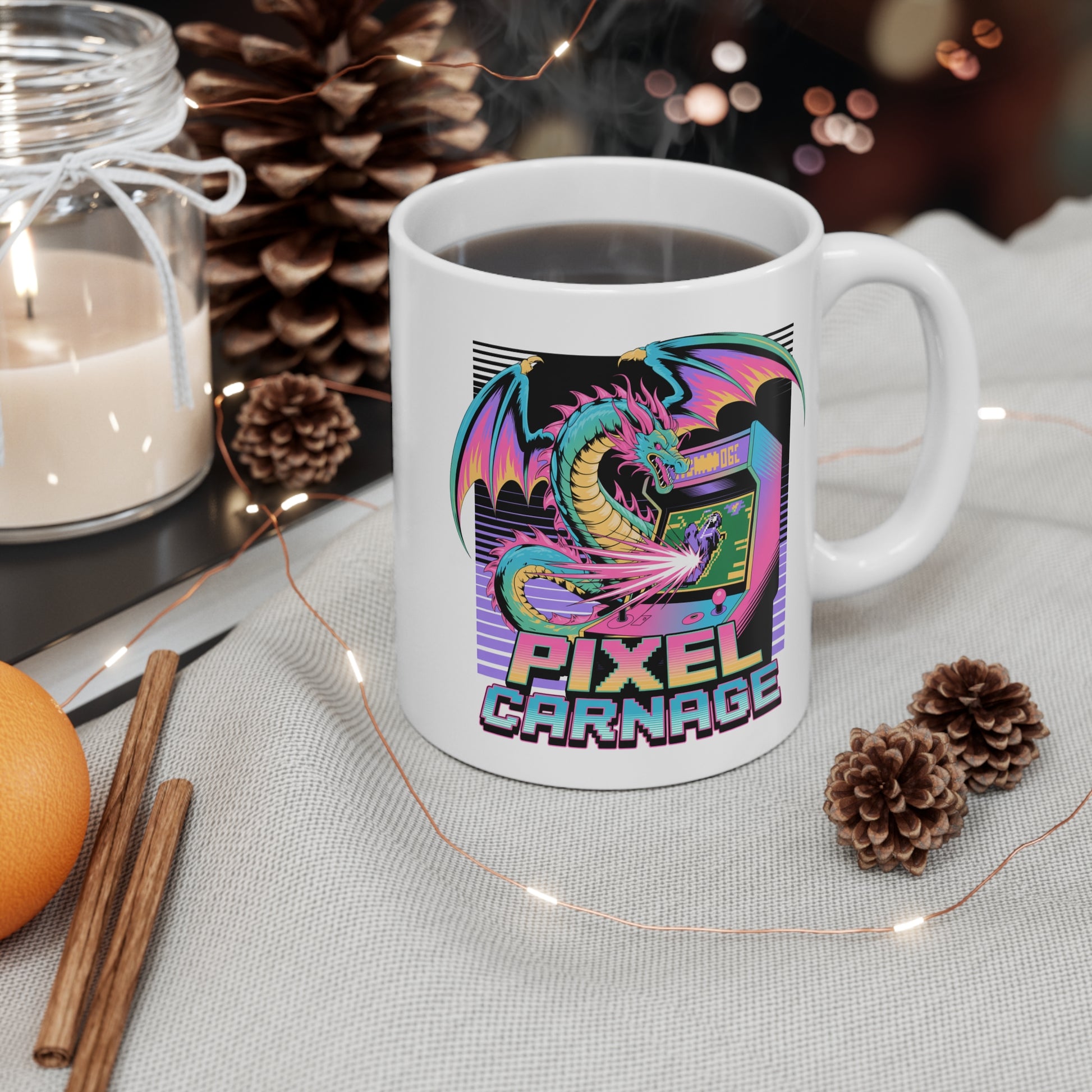 Tasse Gaming 325ml – Mug Pixel Carnage Dragon – Cadeau Geek Rétro Arcade Jeu Vidéo Céramique