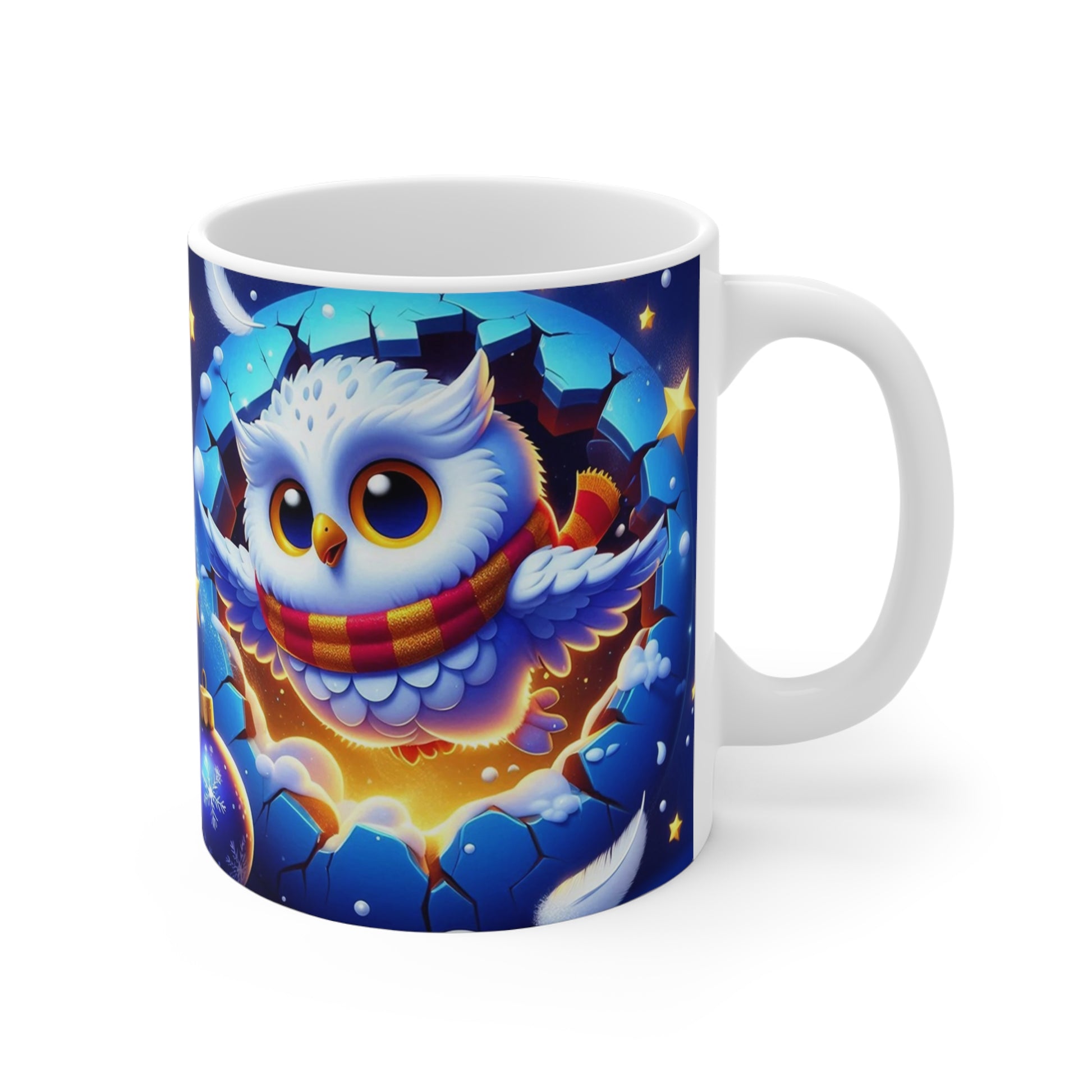 Tasse Hibou Volant Hiver Noël – Mug Céramique 325ml – Cadeau Fantaisie Magique Étoilé