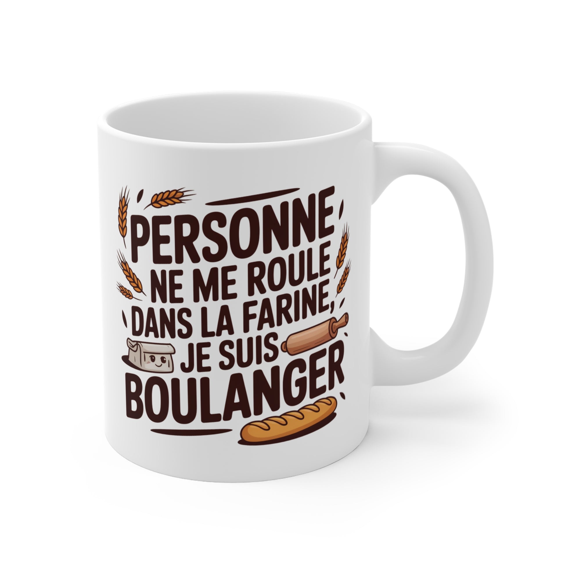 Tasse Humour Boulanger 325ml – Mug Céramique “Personne ne me roule dans la farine” – Cadeau Drôle Artisan Pâtisserie