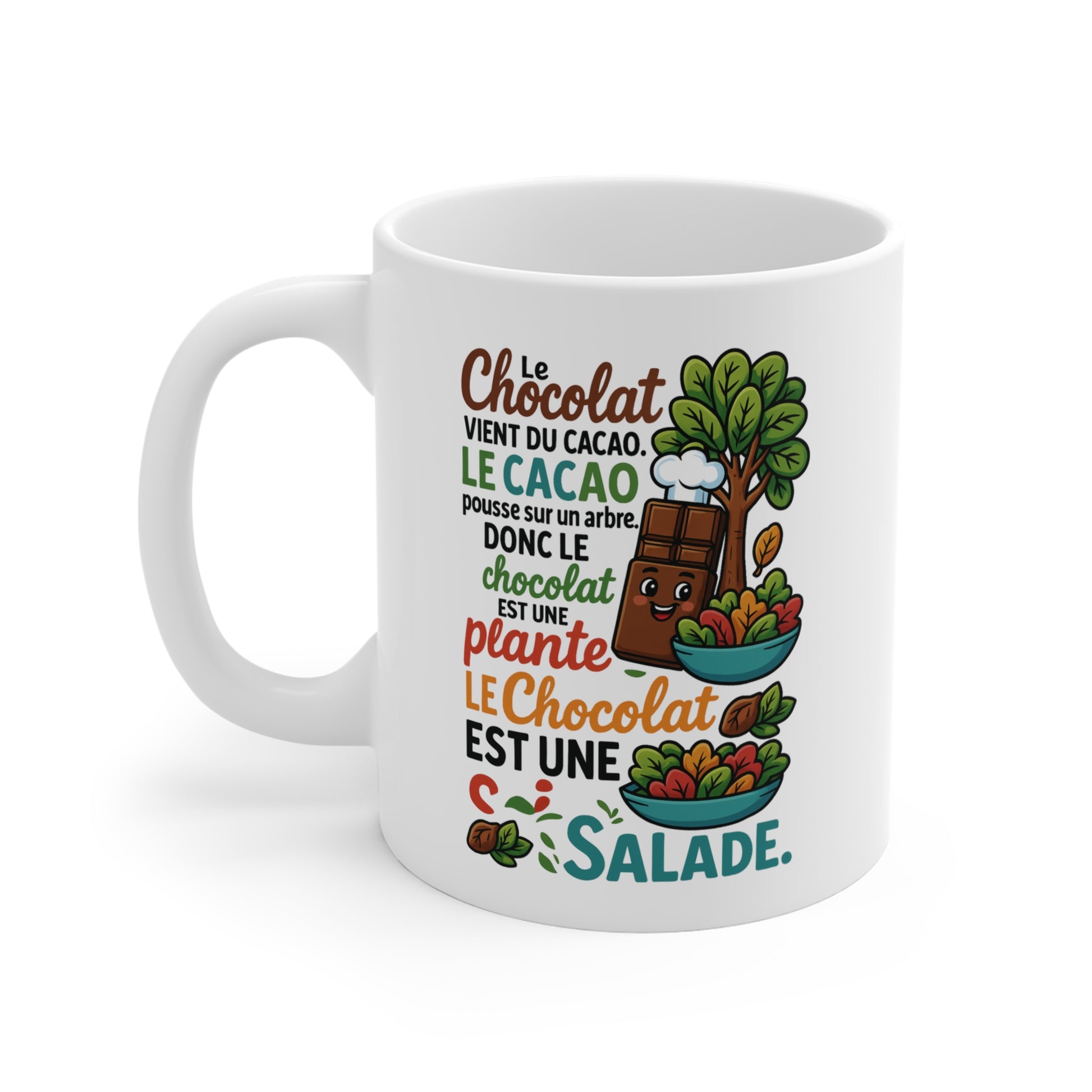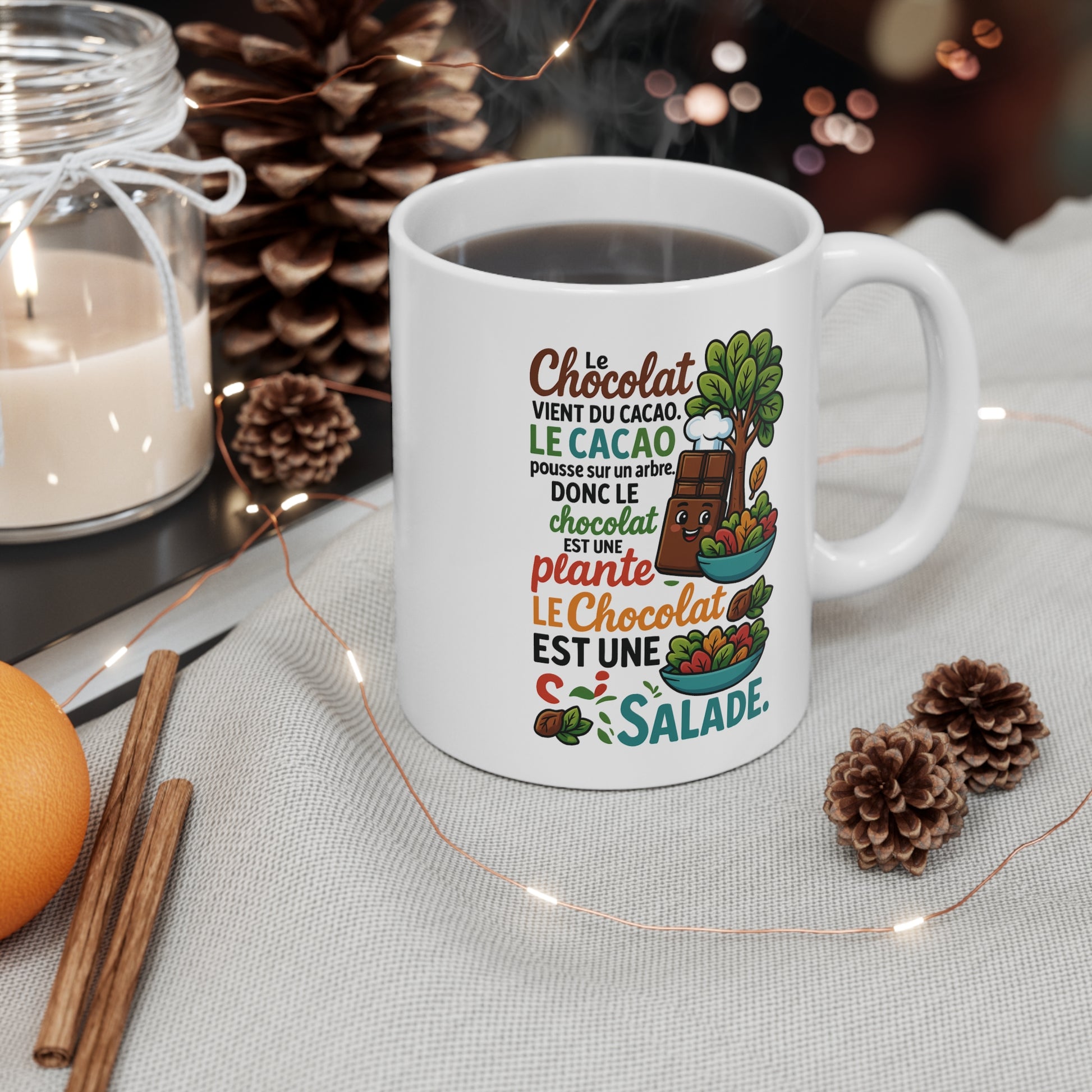 Tasse Humour Chocolat 325ml – Mug Céramique “Le Chocolat est une Salade” – Cadeau Original