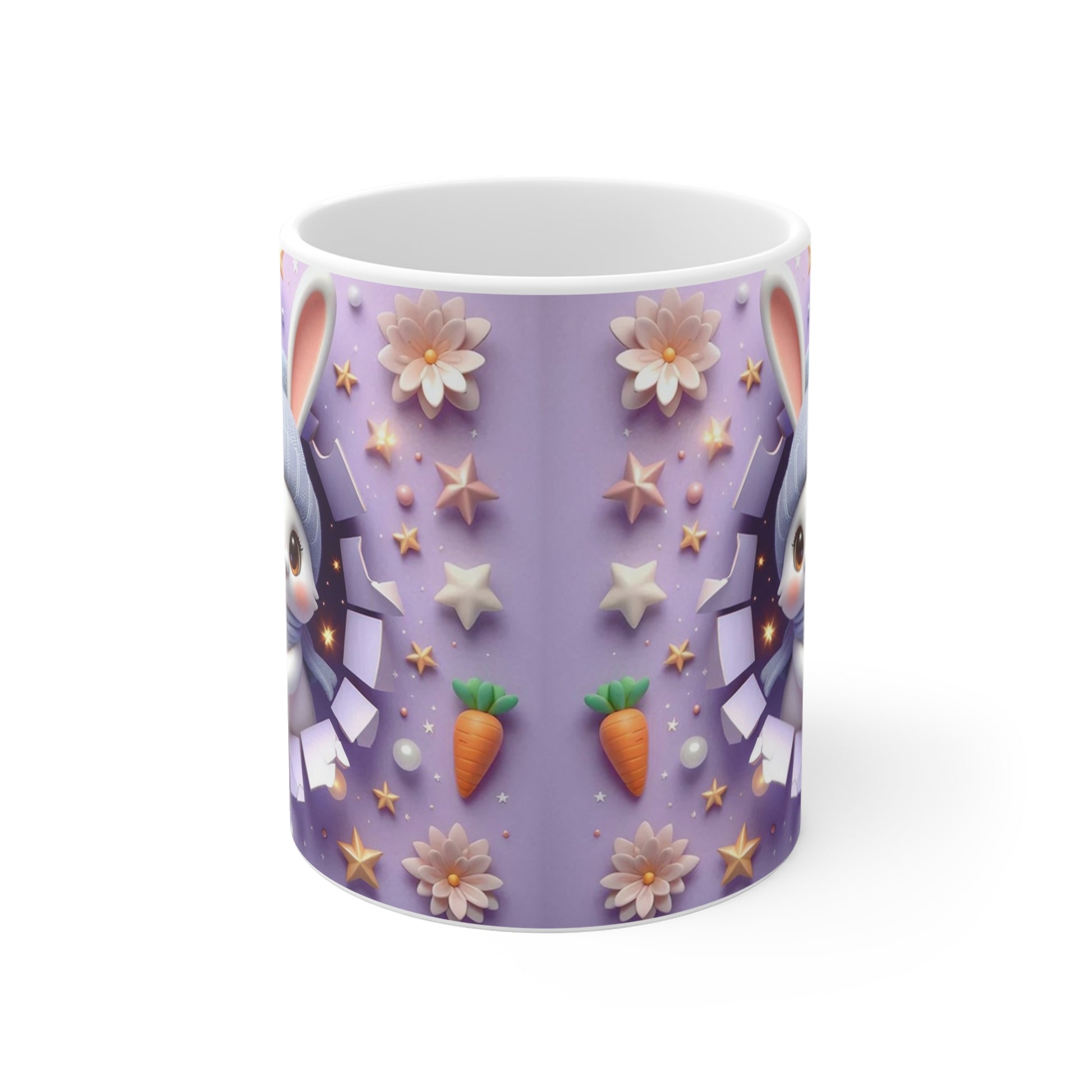 Tasse Lapin Mignon Bonnet Bleu – Mug Céramique 325ml – Cadeau Kawaii Pâques Anniversaire