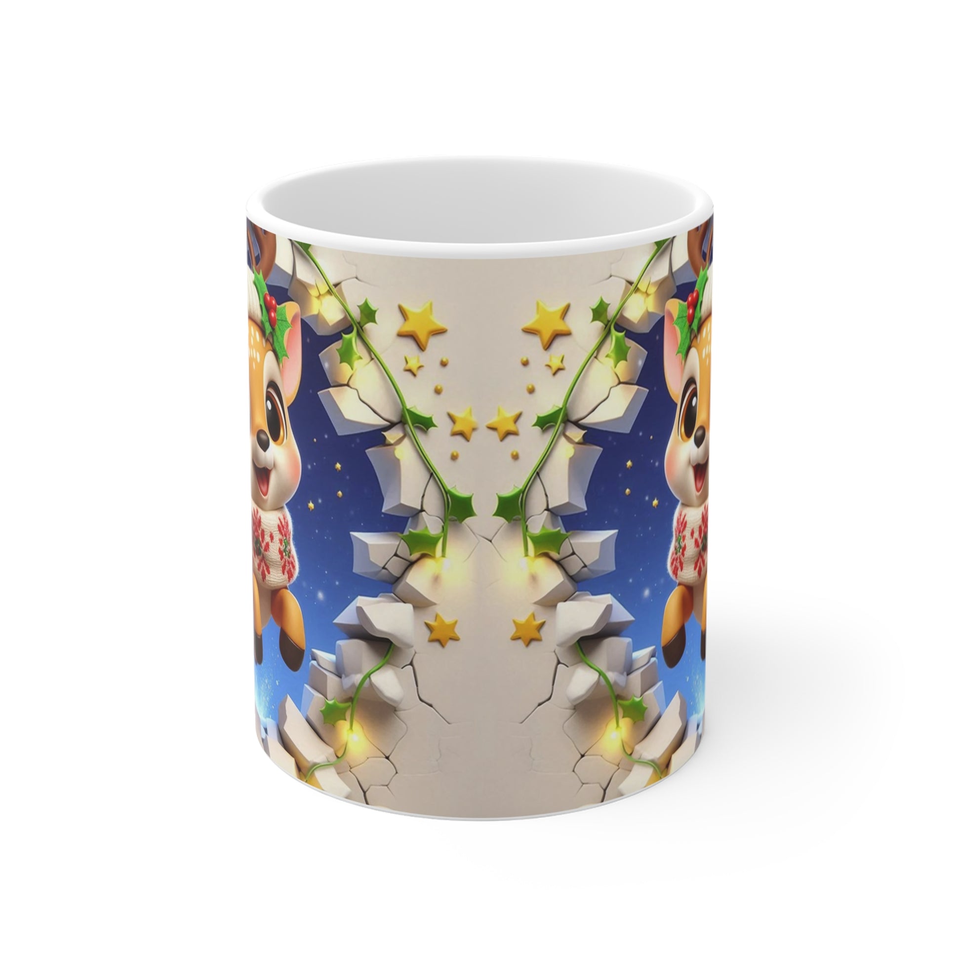 Tasse Noël 325ml – Mug Céramique Faon Cartoon avec Pull et Bonnet – Cadeau Magique Hiver Fêtes
