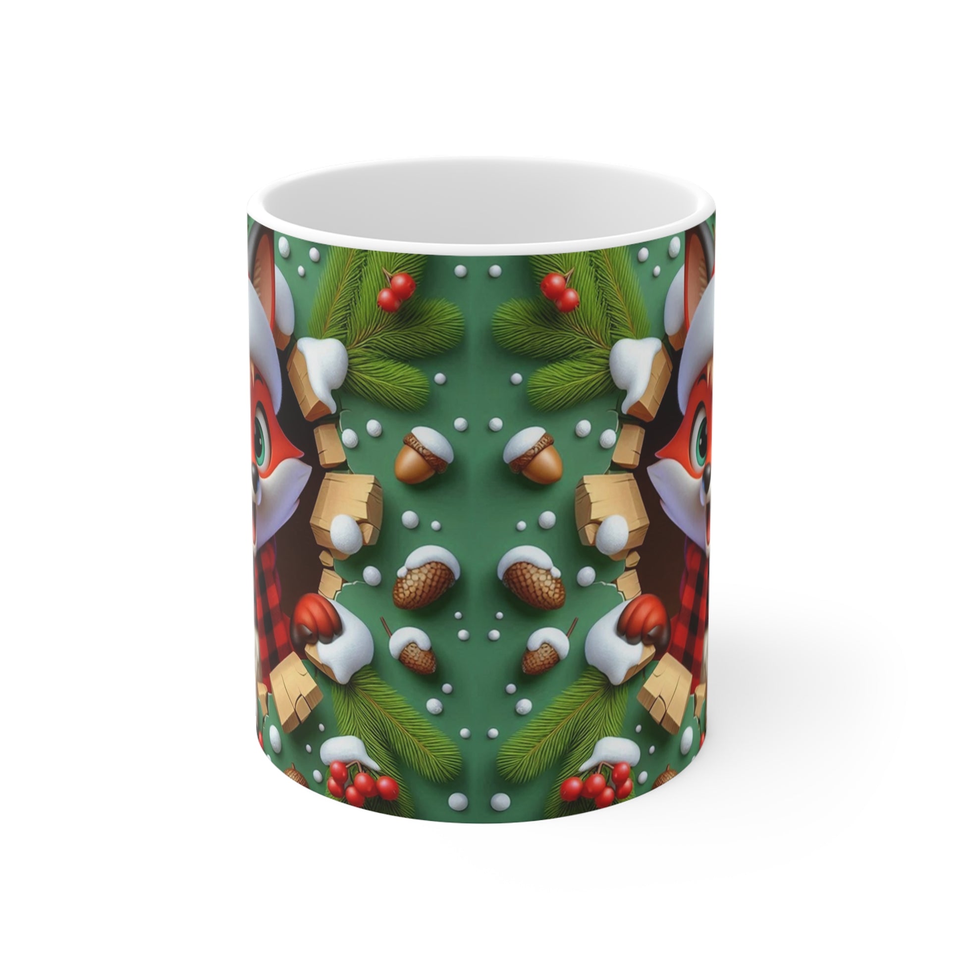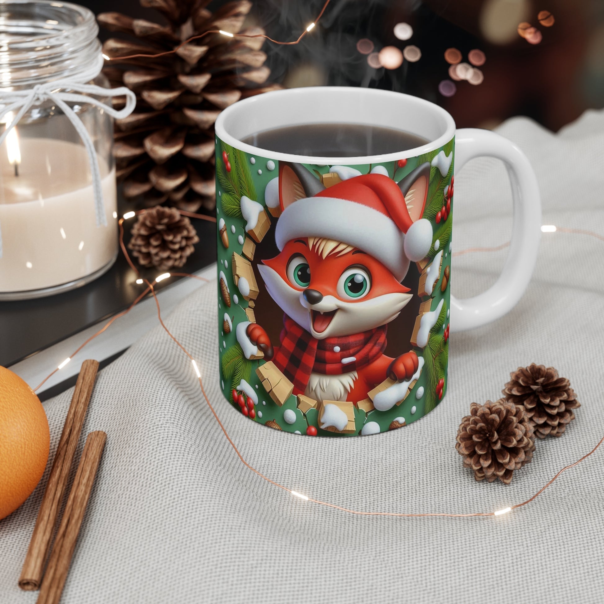 Tasse Noël 325ml – Mug Céramique Renard Cartoon avec Bonnet et Écharpe – Cadeau Original Hiver Fêtes