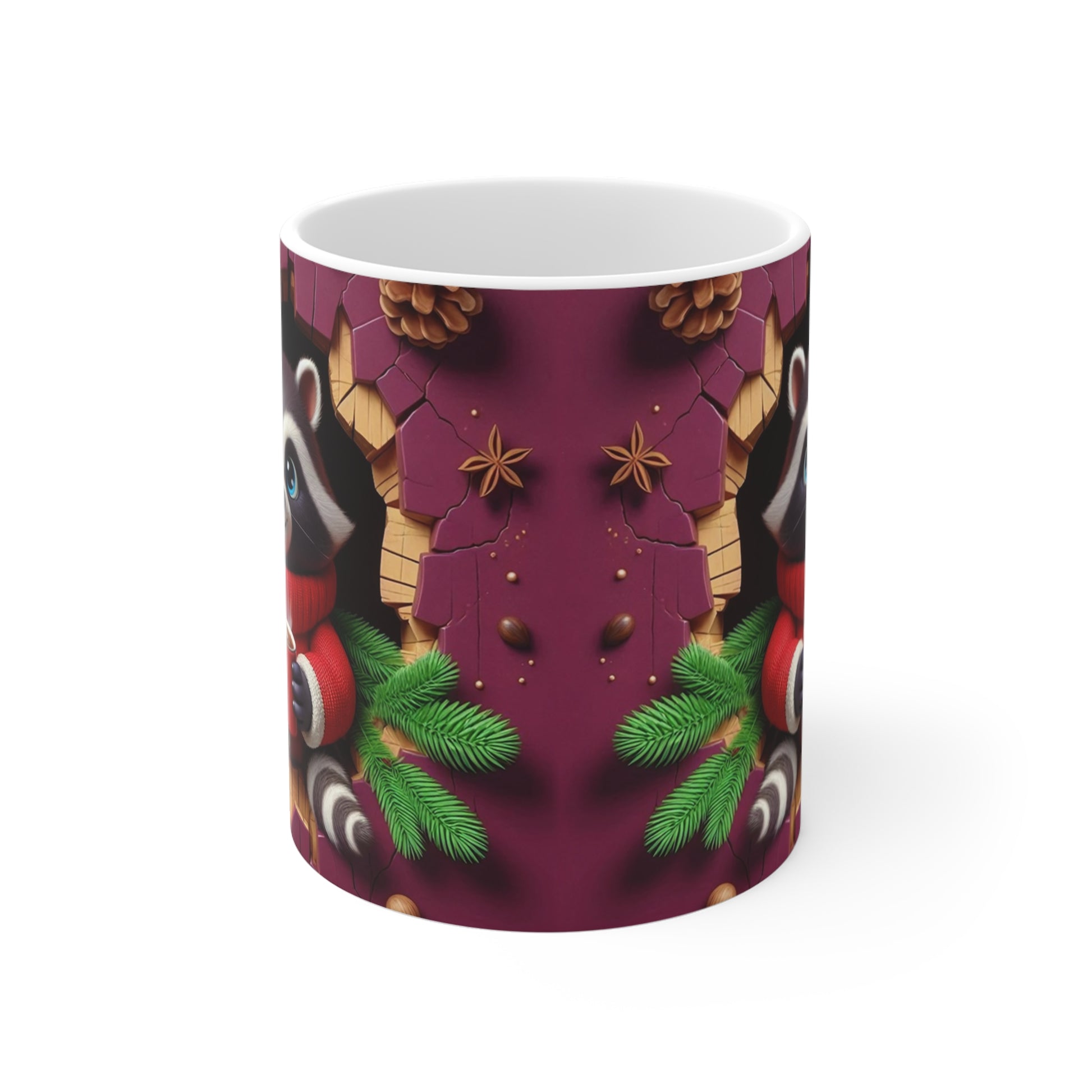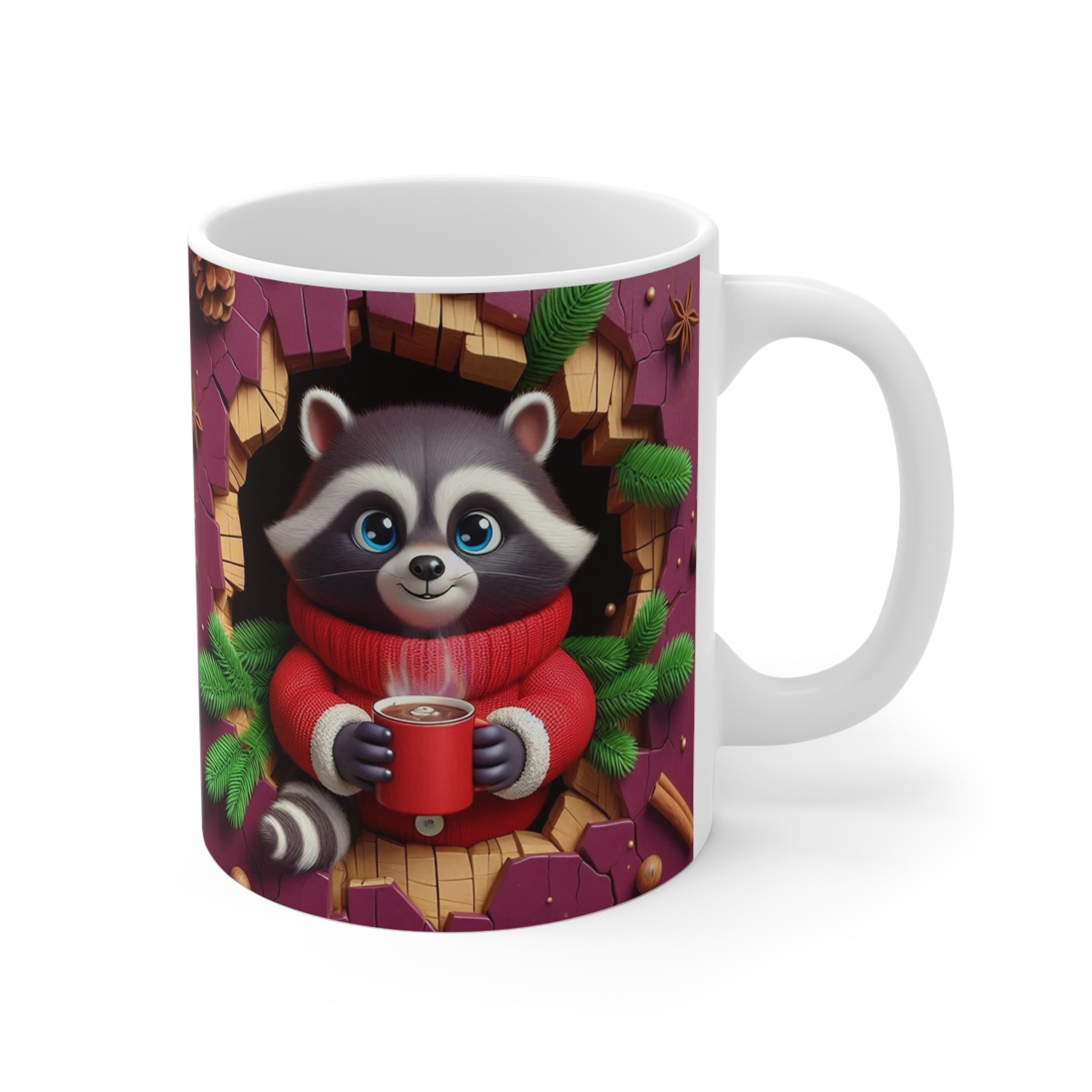 Tasse Raton Laveur Hiver – Mug Céramique 325ml – Cadeau Noël Animaux Chaud Cocooning