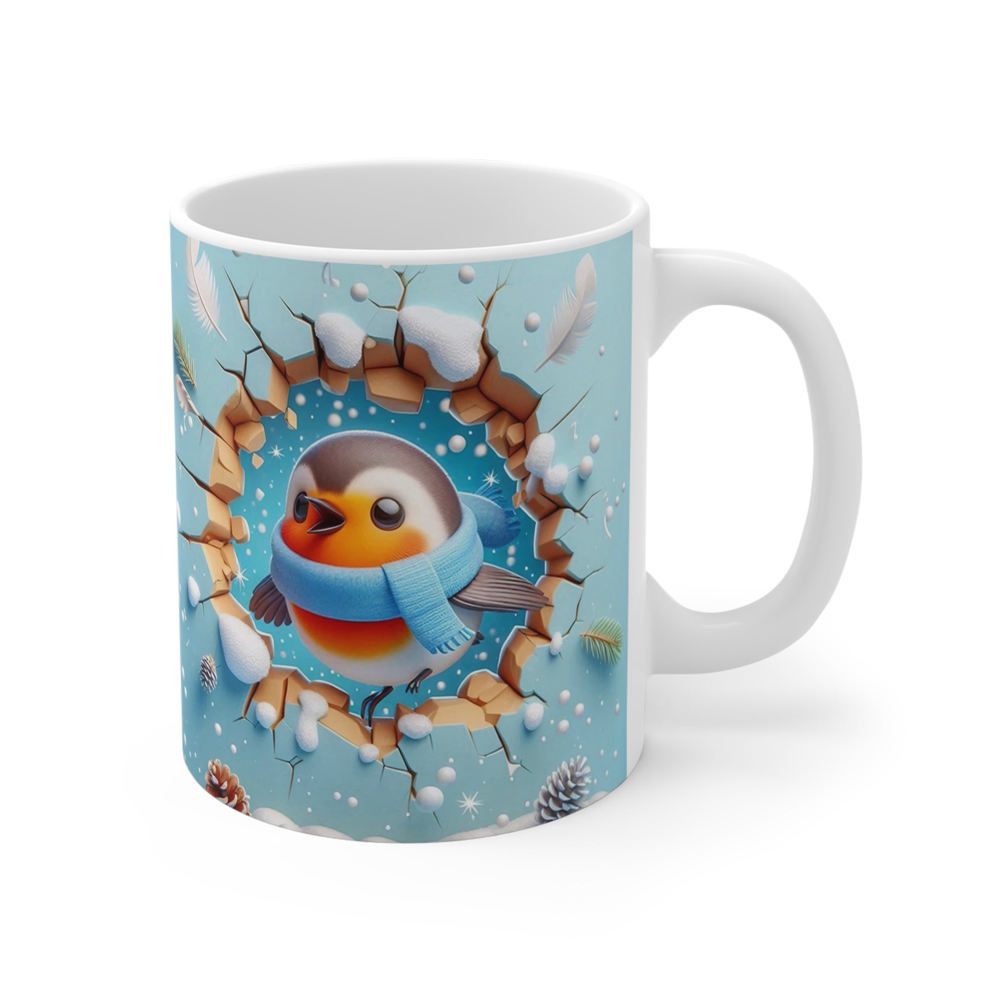 Tasse Rouge-Gorge Mignon – Mug Céramique 325ml – Cadeau Hiver Oiseau Nature Festif