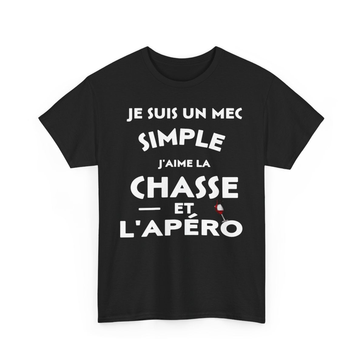 Tee shirt Homme Je suis un mec simple j'aime la chasse et l'apéro idée cadeau humour drôle