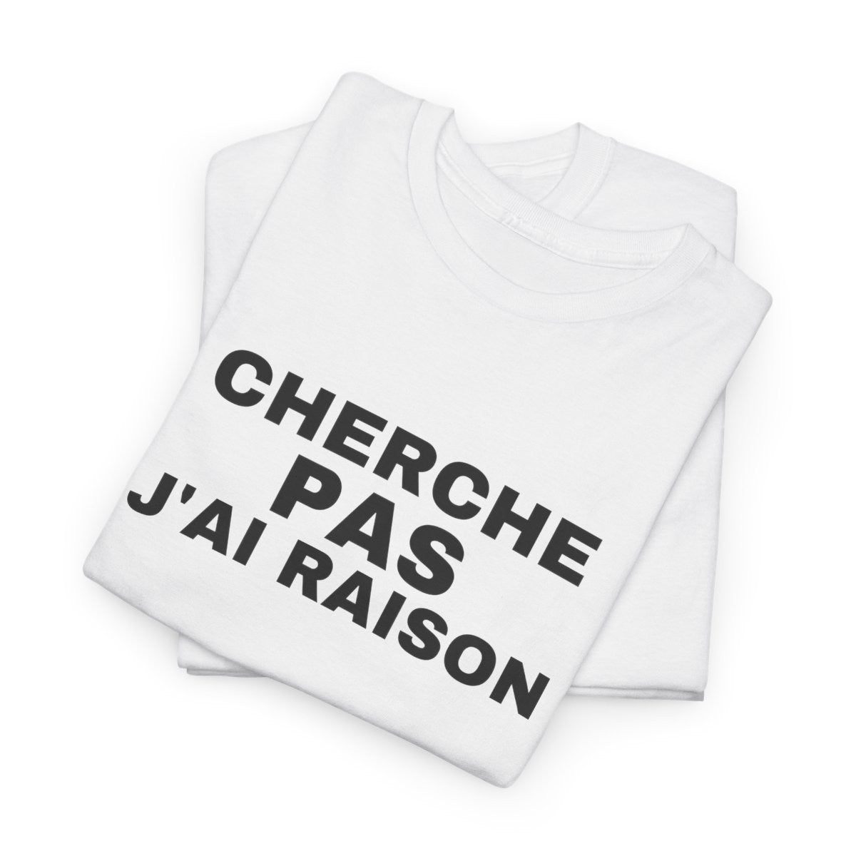 Tee Shirt Humour "Cherche Pas, J'ai Raison" - Pour Homme et Femme